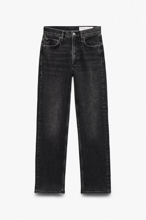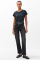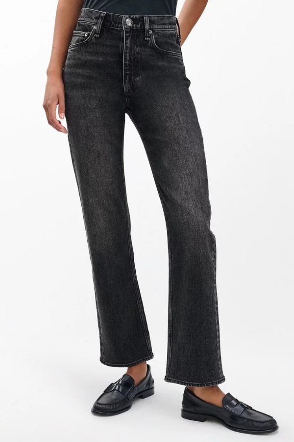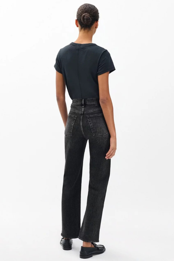 The Harlow. Impossibly cool straight-leg jeans that are mid-rise, fitted through the thighs, and cropped at the ankles. Crafted from our Vintage Stretch denim for a broken-in look & feel with a comfortable touch of stretch. In Cinder, a washed black.
