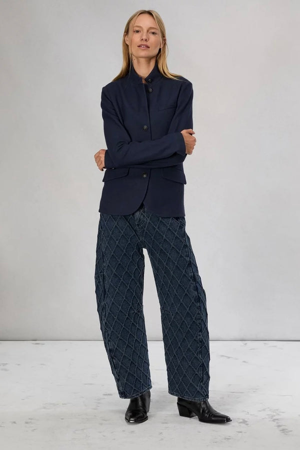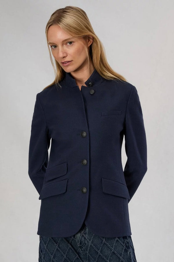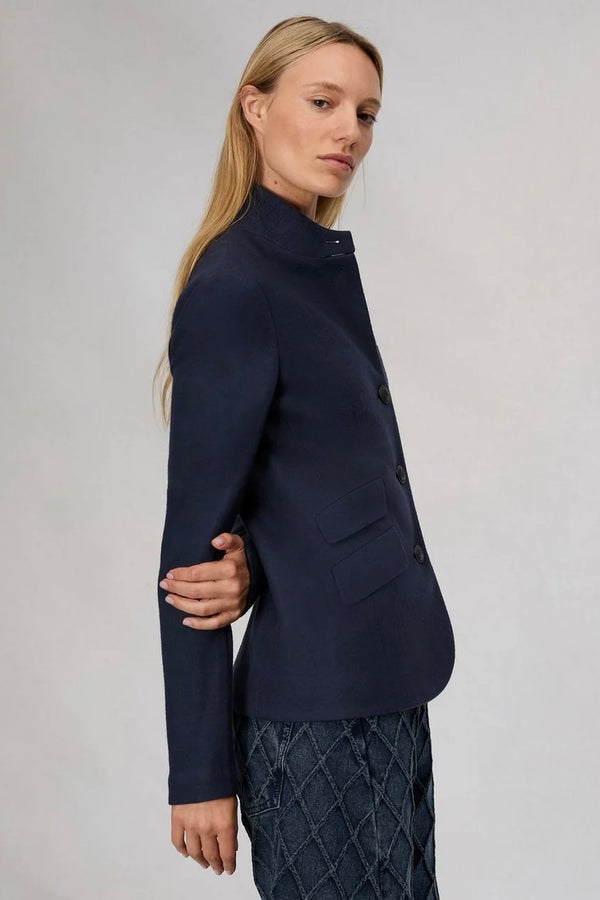 The Slade. A rag & bone favorite. Crafted from a Japanese wool suiting fabric with a classic, tailored fit. Featuring a stand collar, this style perfectly blends the refinement of a blazer with the utility of a military jacket. Complete with dagger buttons down the front.