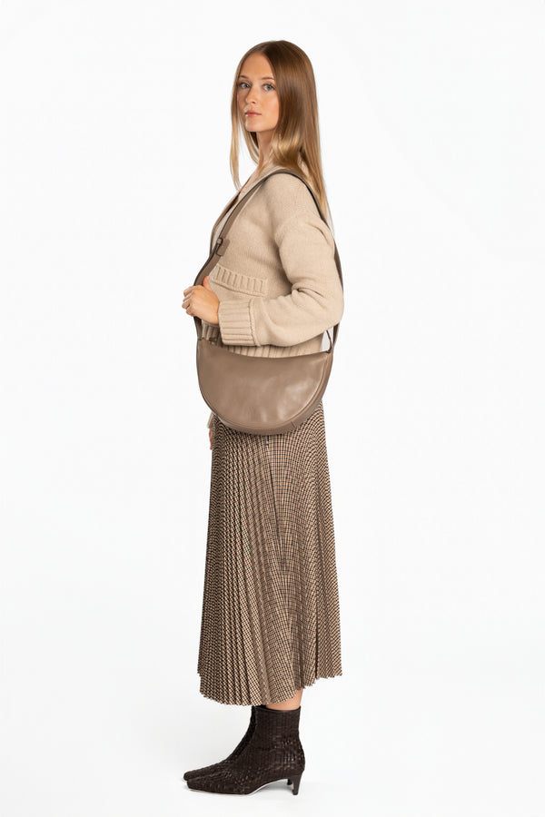 This Oliveta hobo bag from II Bisonte is crafted of metallic leather and comes with an adjustable shoulder strap.
