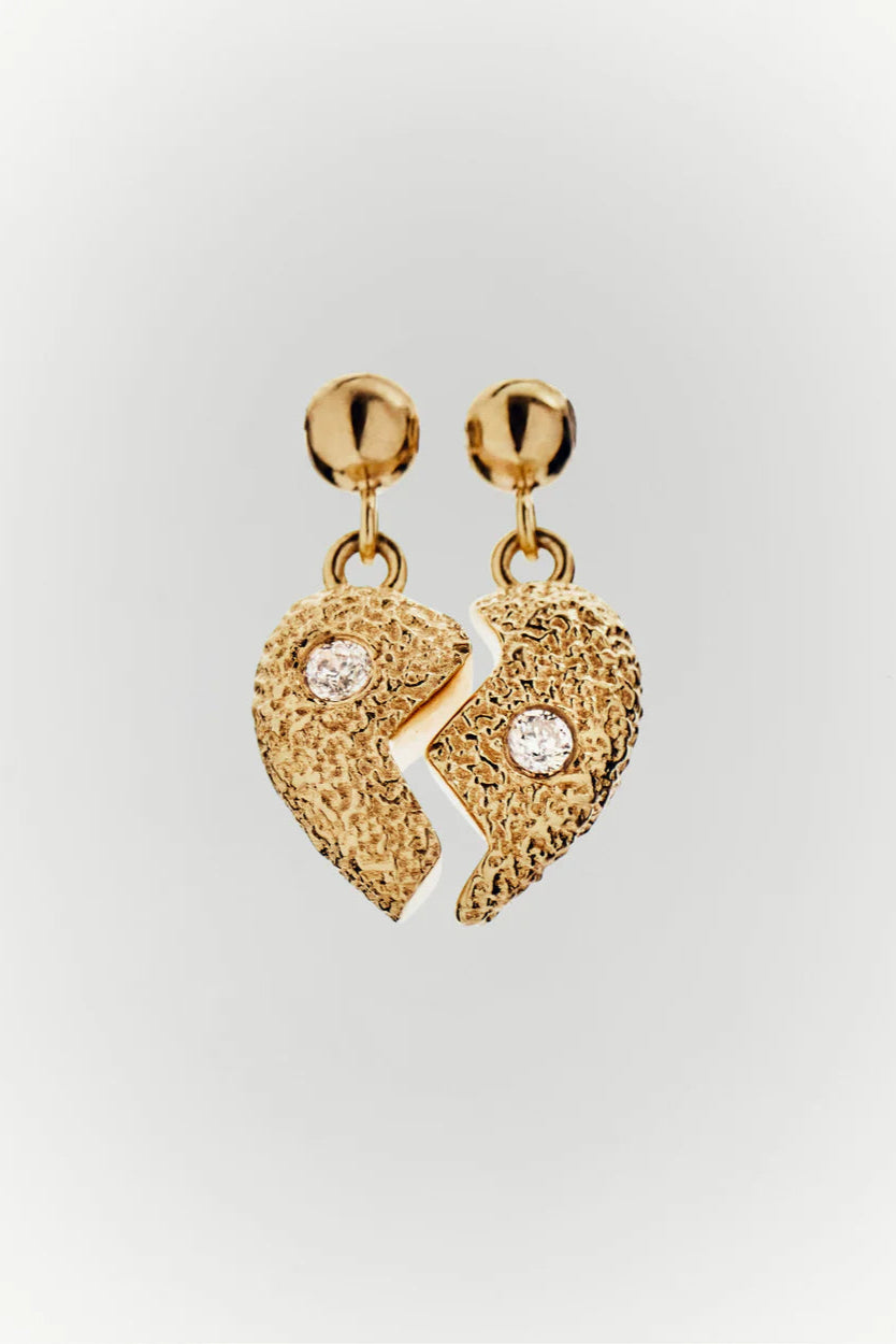 Two-piece heart charm with texture and zirconia to personalize necklace or bracelet