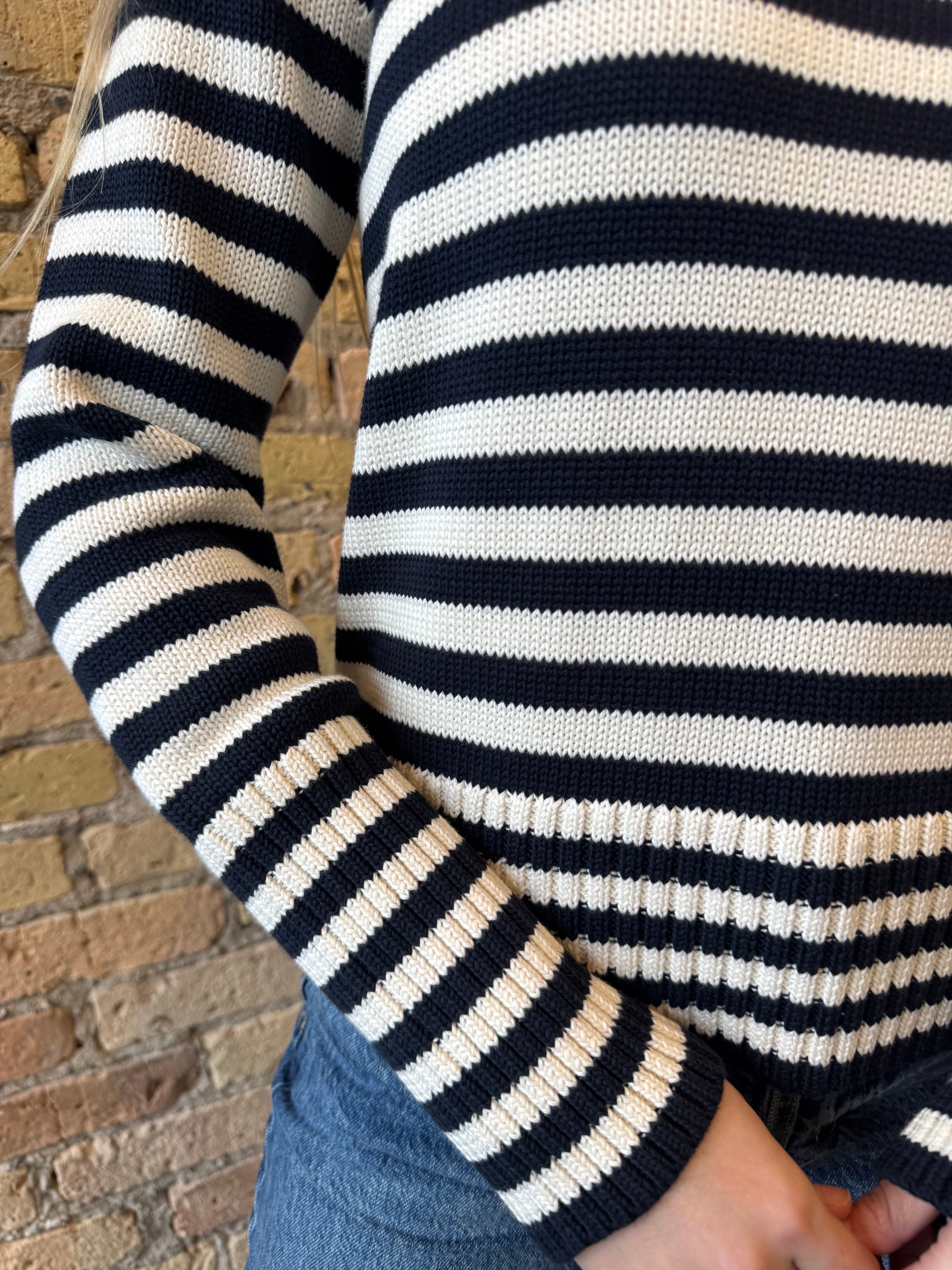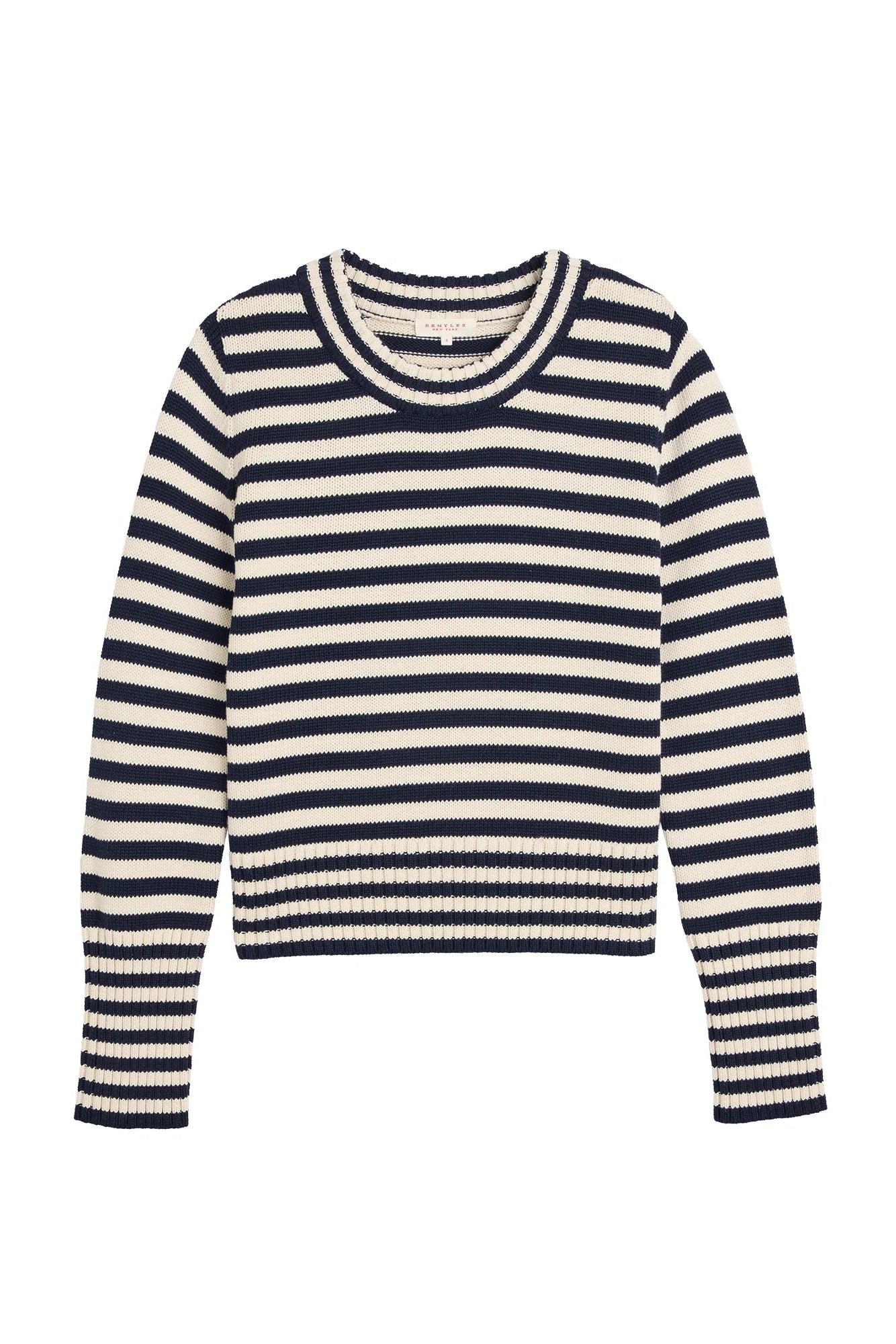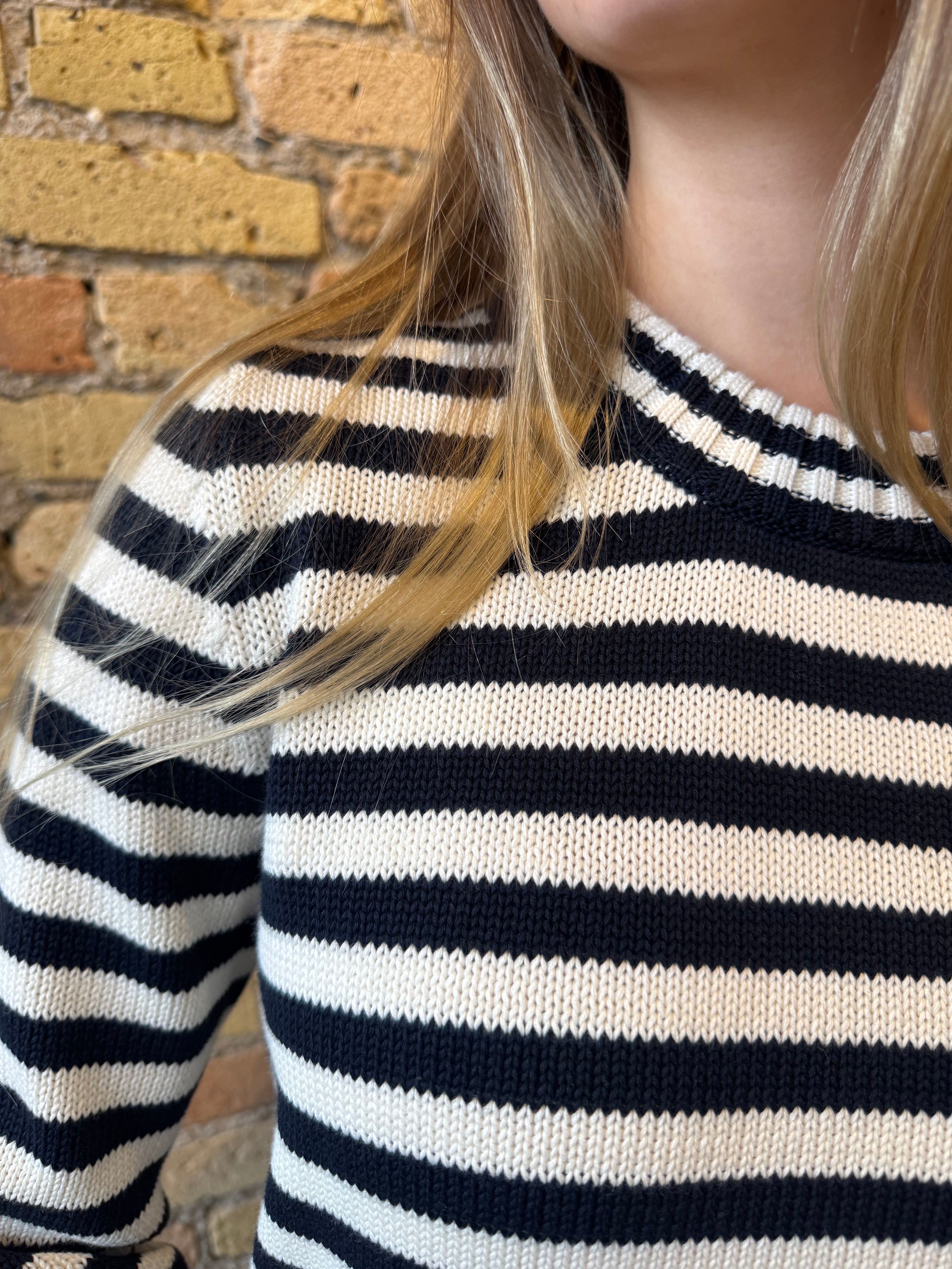 Long-sleeve crewneck sweater.  Elongated ribbing at cuffs.