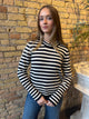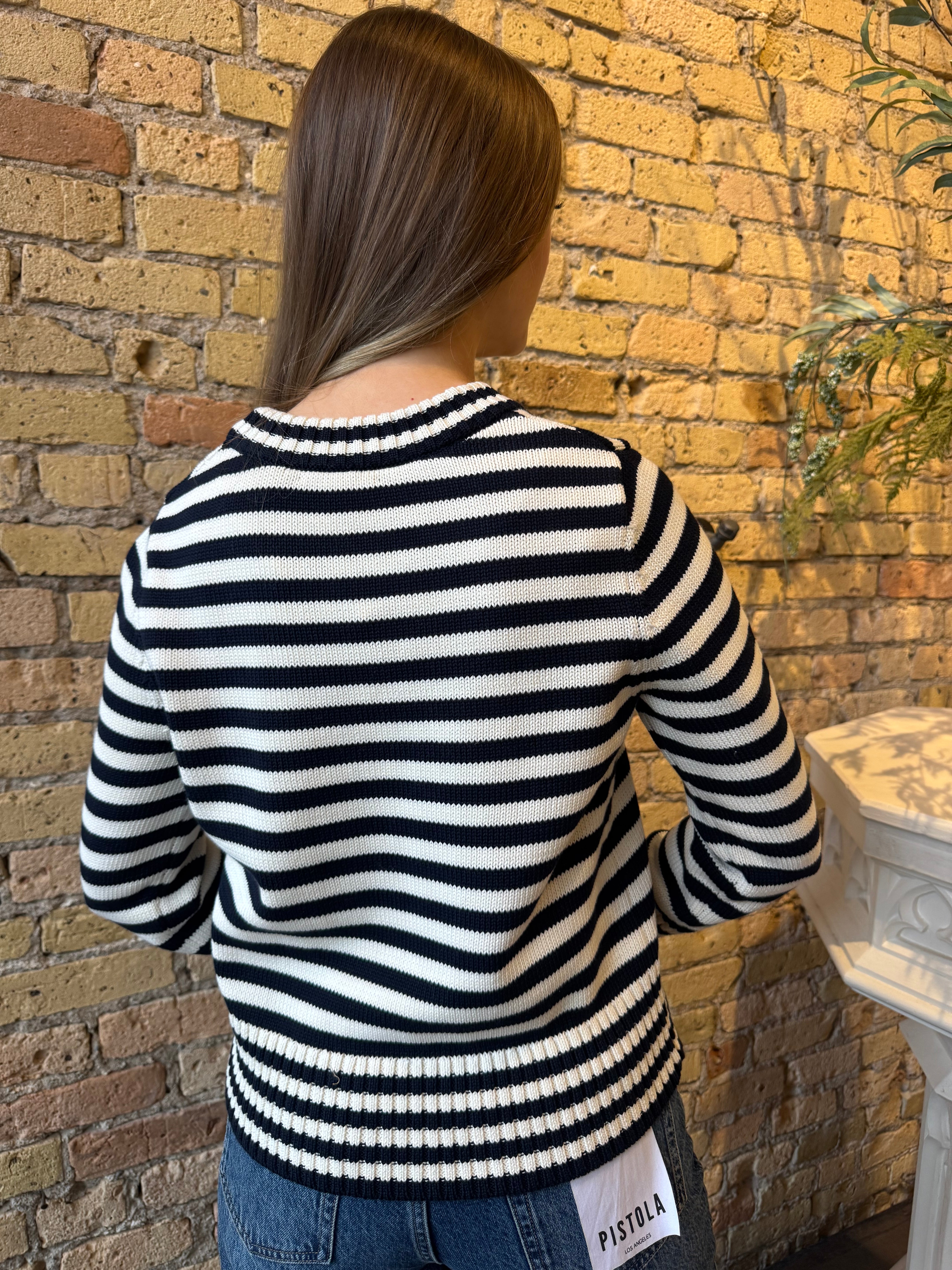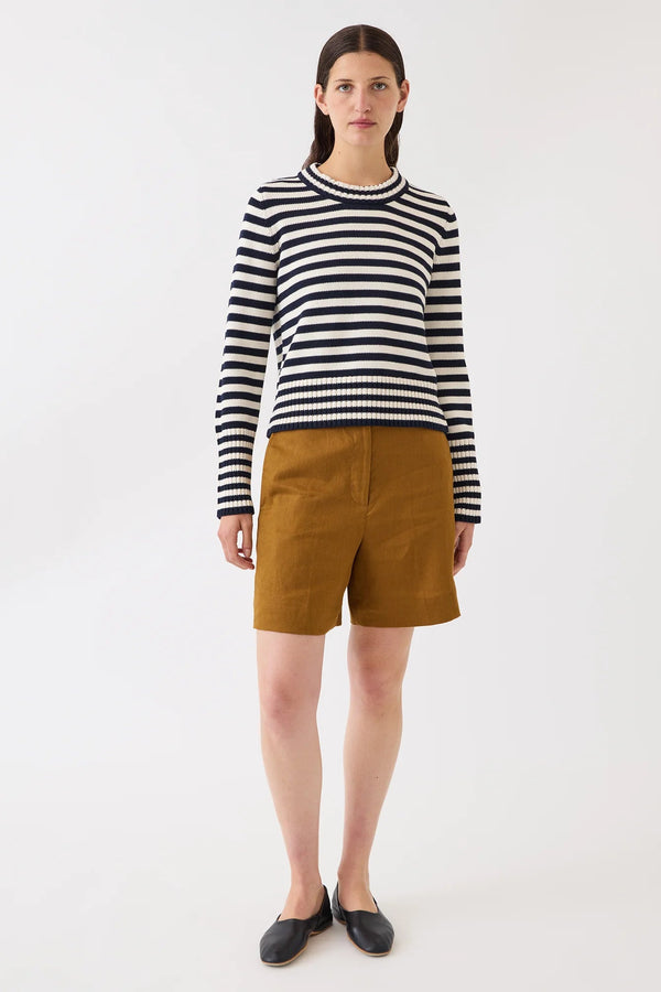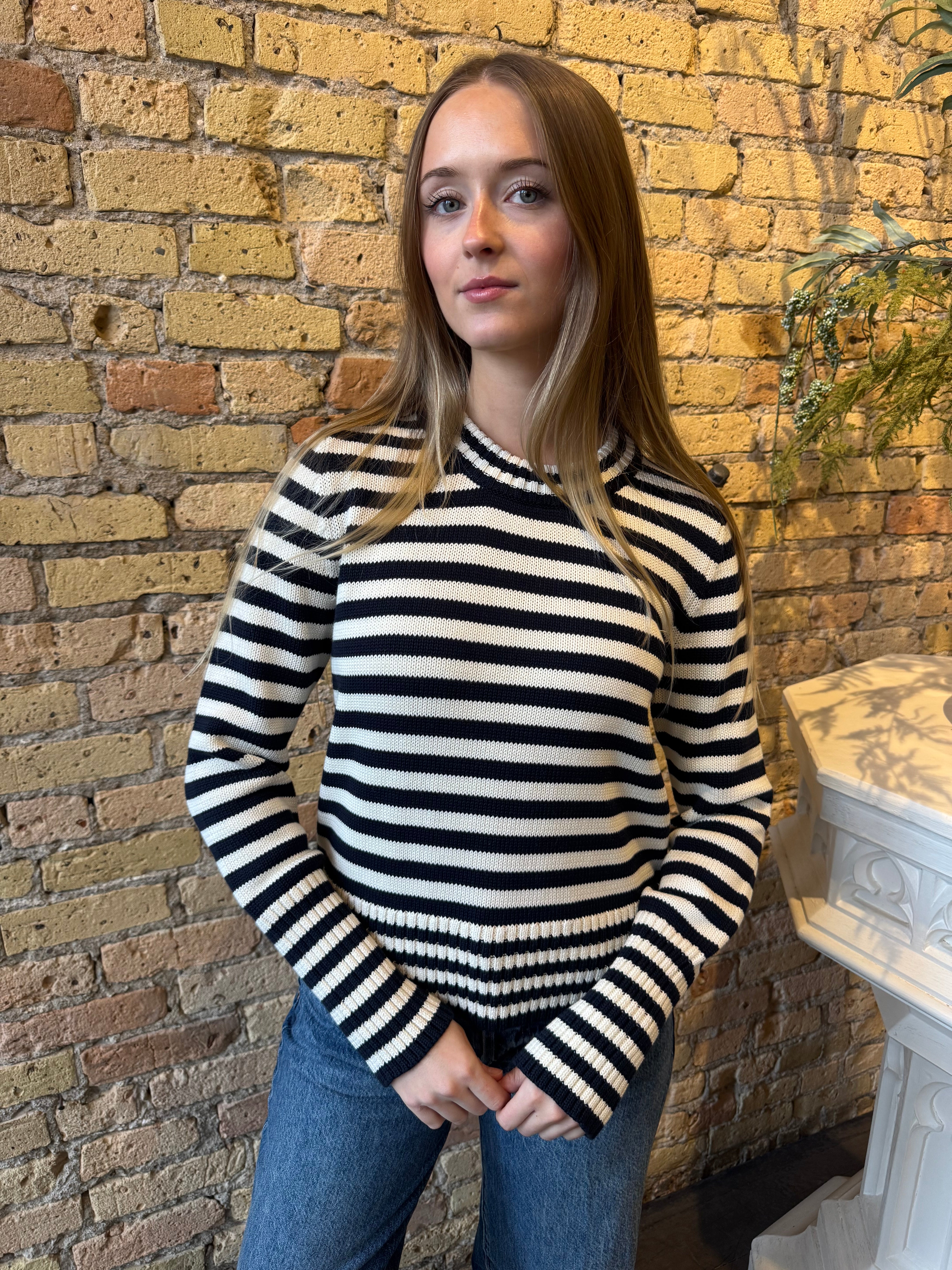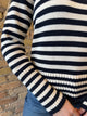 Long-sleeve crewneck sweater.  Elongated ribbing at cuffs.