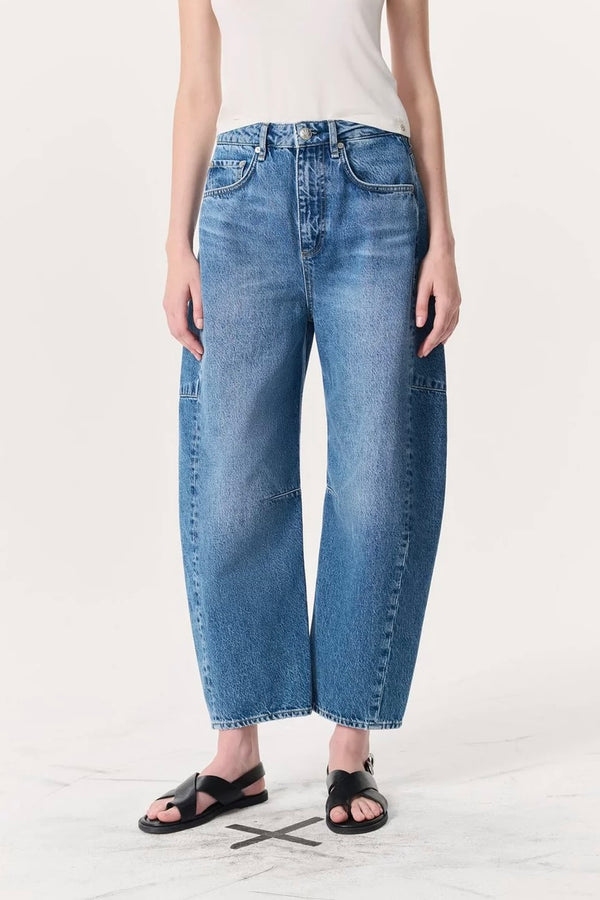 The Charlie. The perfect update to your denim lineup, defined by an exaggerated barrel shape with a relaxed, looser fit and a slight tapered curve that hits at the ankle. Crafted from Lightweight Rigid non-stretch denim that provides structure, but breaks in over time for a soft and comfortable feel. In Accord, a medium indigo wash.
