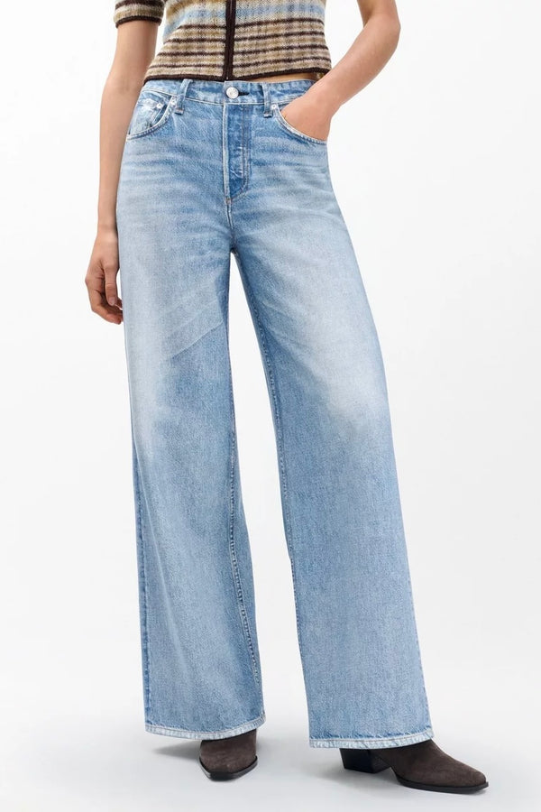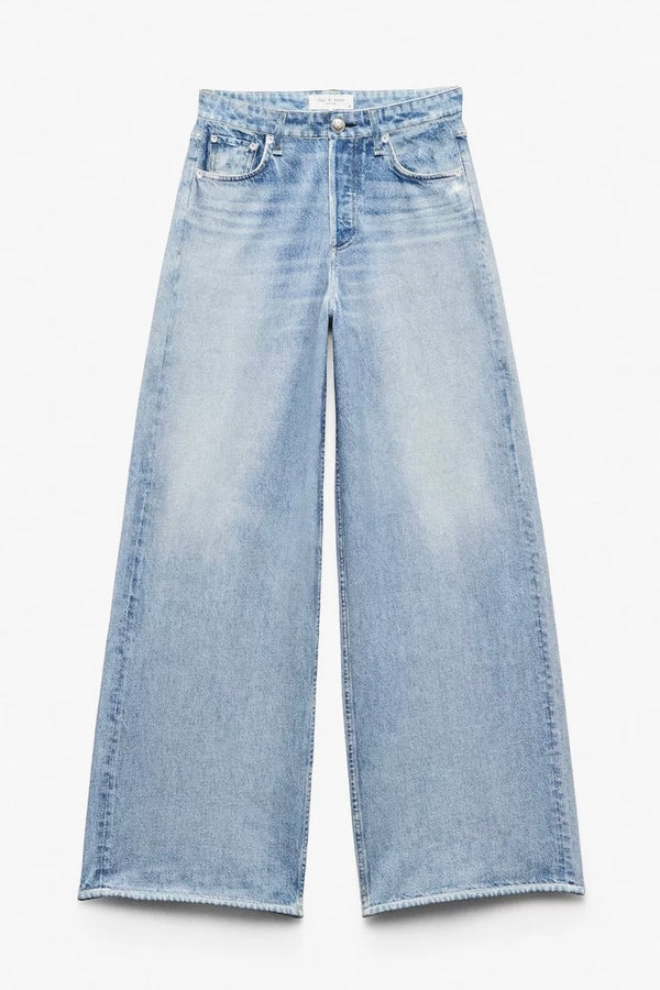 Miramar, Rag & Bones revolutionary printing technique, makes any material look like denim. These Sofie pants are cut and sewn from cotton terry cloth that's ultra-soft on the inside and printed on the outside to look like your favorite jeans. Featuring super-wide, full legs with flared hems, plus functional belt loops, front scoop pockets, a zip fly, and a button closure, the high-rise style further achieves its comfortable fit and feel with the back pockets and other denim details digitally printed on the fabric.