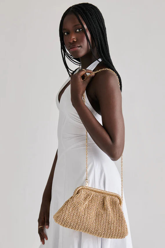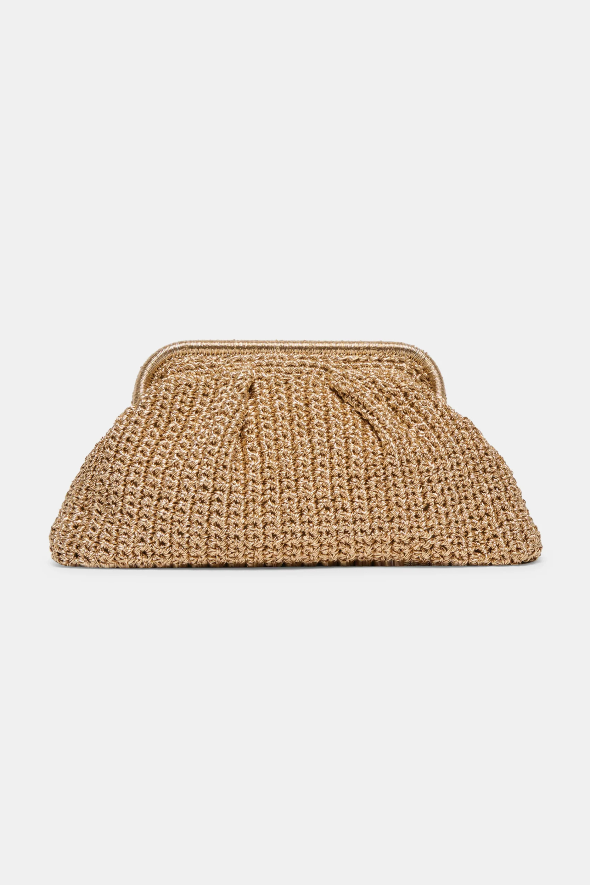 IONE is a versatile essential for your warm weather wardrobe. This clutch can be dressed up or down as a standalone or with her detachable and practical crossbody strap. Crafted in shimmering gold crochet, her classic frame silhouette elevates any look while remaining perfectly neutral. Add her elevated texture to flowy maxi dresses and wedges for dinners out, go hands-free for daytime exploring in a matching set and sandals, and take her along to all your beachside getaways.