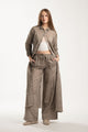 Bracelet sleeve button down long shirtdress with seam at high-tapered waist.