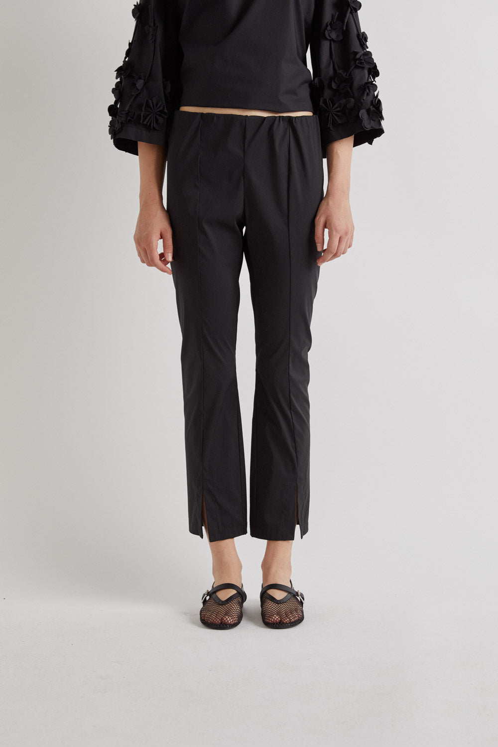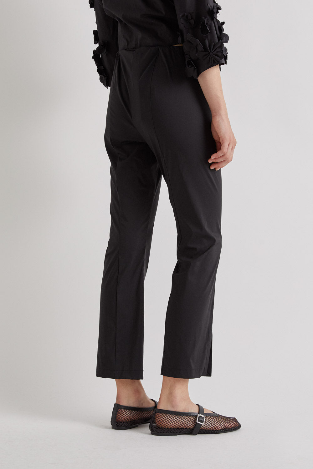 These pin pants offer a sleek, streamlined silhouette with a flattering straight-leg fit. Designed with subtle front seams and small side slits at the hem, they bring a modern edge to a classic style.