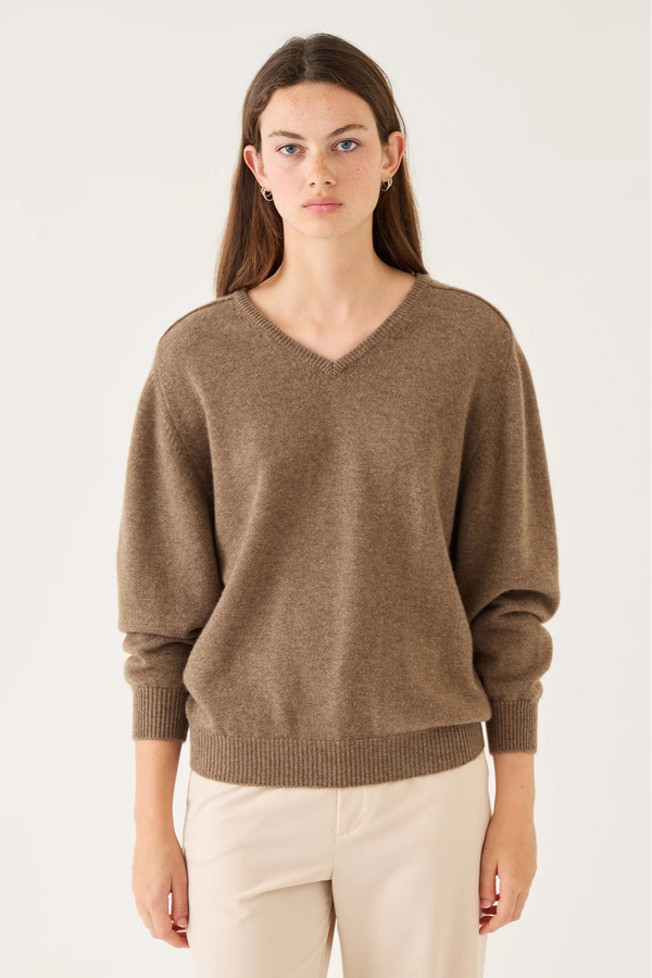 The perfect essential cashmere v-neck. Higher neckline, saddle shoulder, deep armhole into easy-fit body. Fine rib trims.