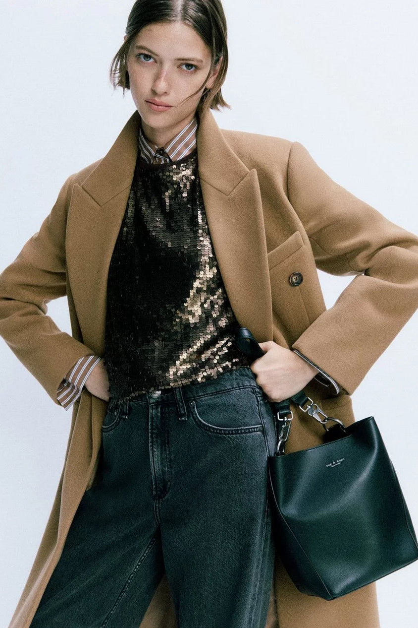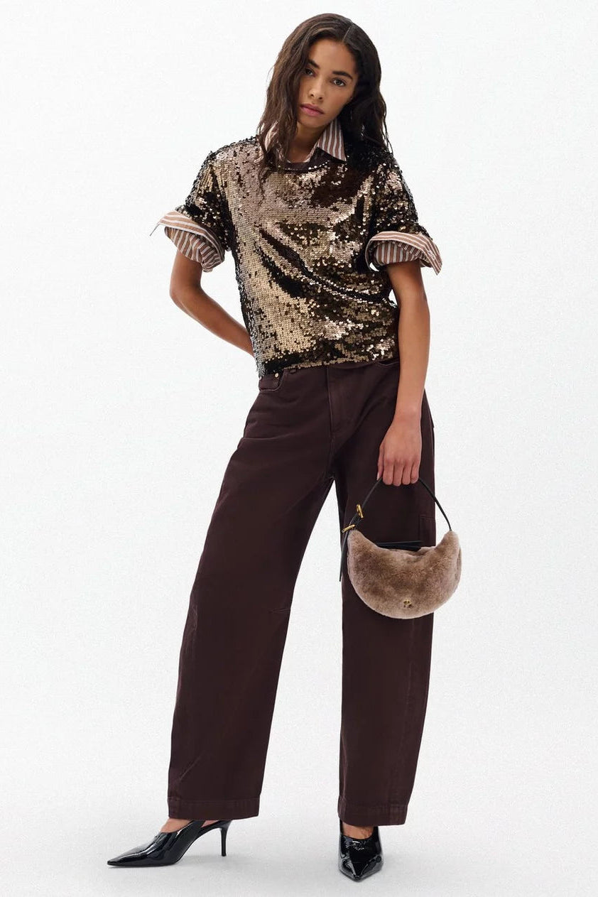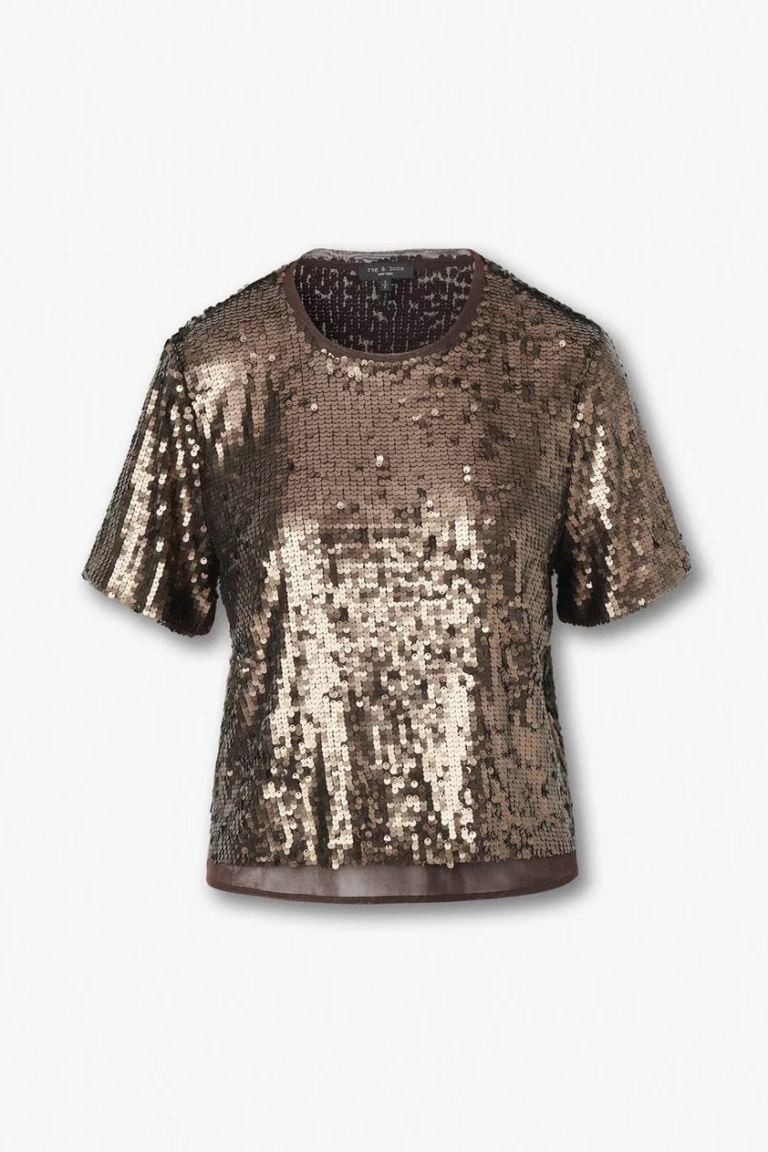 Something special. This sequin top is cut for a relaxed fit and lined with mesh for comfort. Here just in time for effortless dressing up this party season.