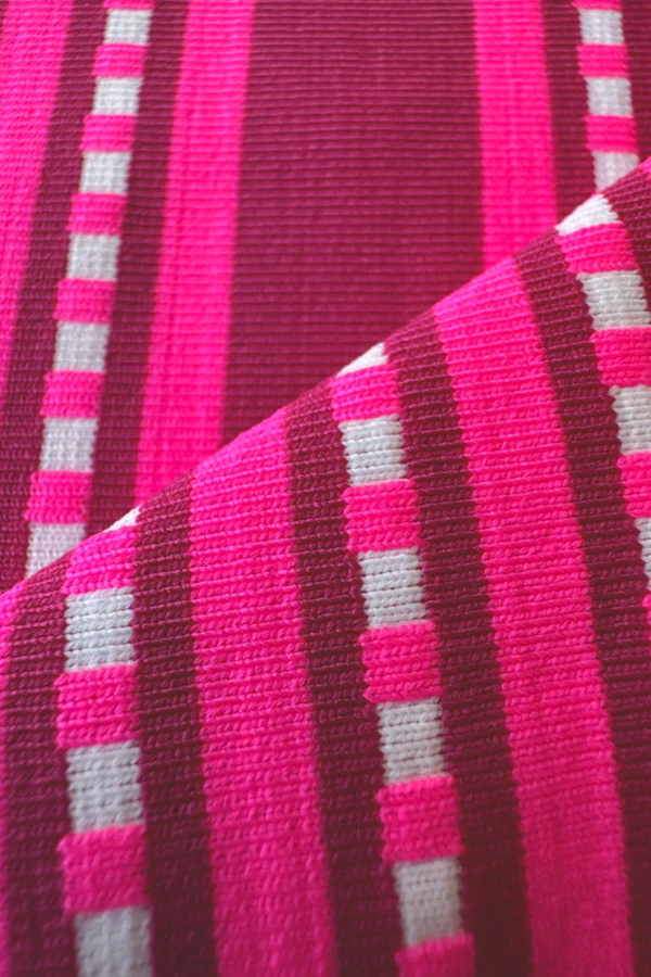 The Netibi Fuchsia Collection features vibrant bright pink stripes accented with ivory dots, all set against a bold fuchsia background. The playful mix of colors and patterns creates a lively, eye-catching look.