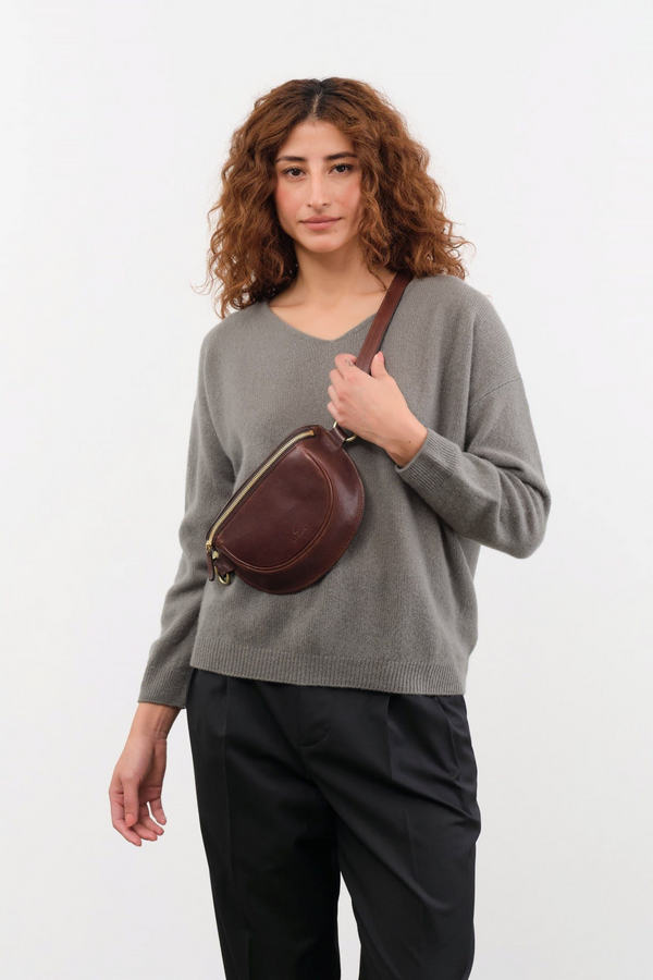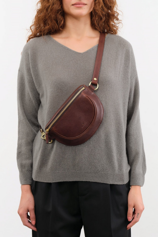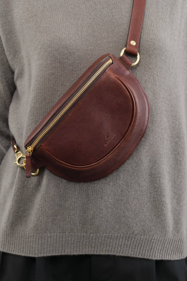 The Oliveta Belt Bag is made from high-quality vegetable-tanned leather, adding a touch of elegance to any look. Designed to be a crossbody bag, the Oliveta features an adjustable shoulder strap with a cufflink. The zip opening, featuring a leather zip puller, ensures convenient access to your belongings. The interior is lined with durable cotton canvas for increased protection.