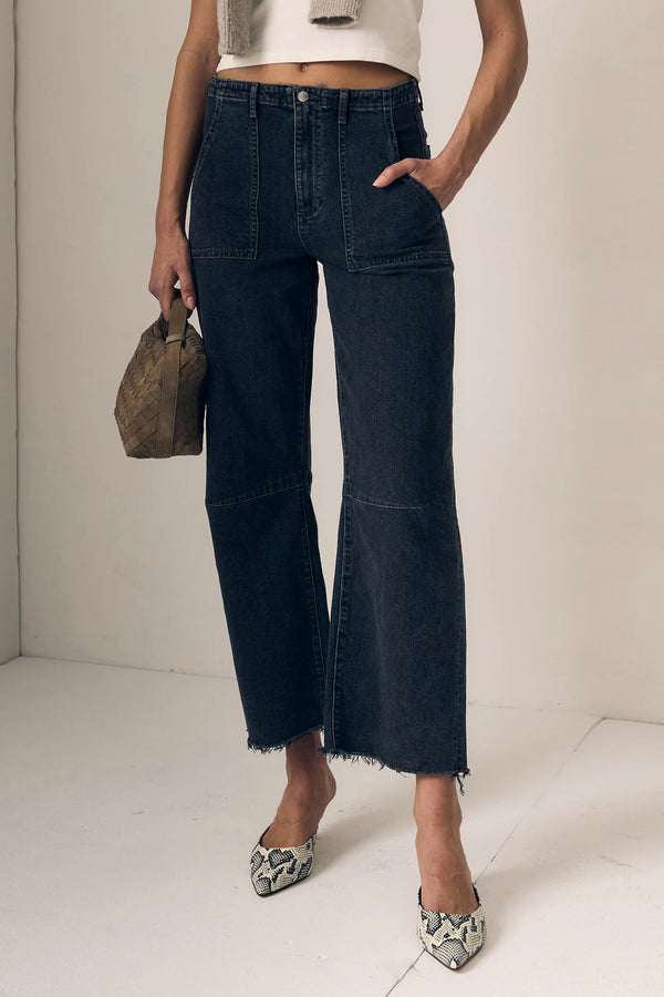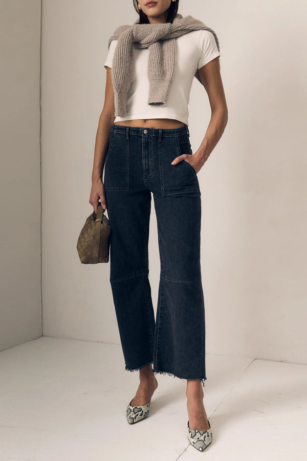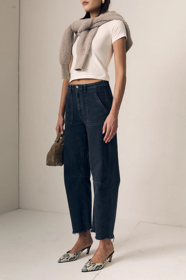 Utility Soft Barrel is a relaxed wide-straight leg with a curved outseam shape. Cut from denim blended with a comfort stretch. The classic faded black wash makes them endlessly versatile. Made in Los Angeles