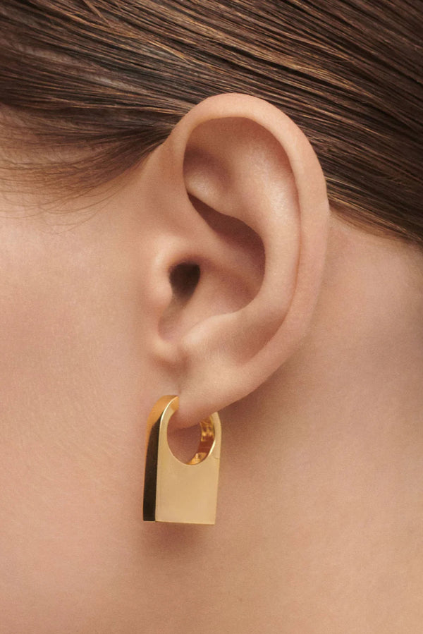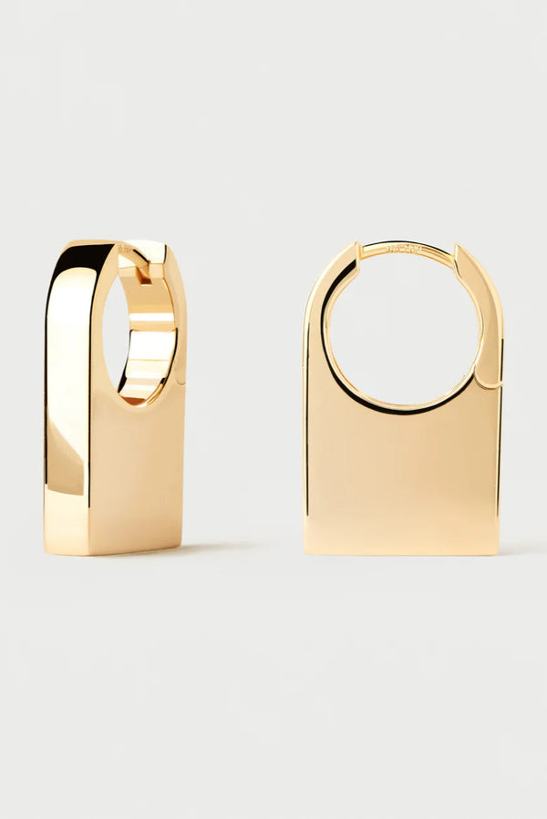 Gold-plated distinctive geometric hoop earrings with an elongated square shape