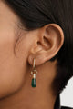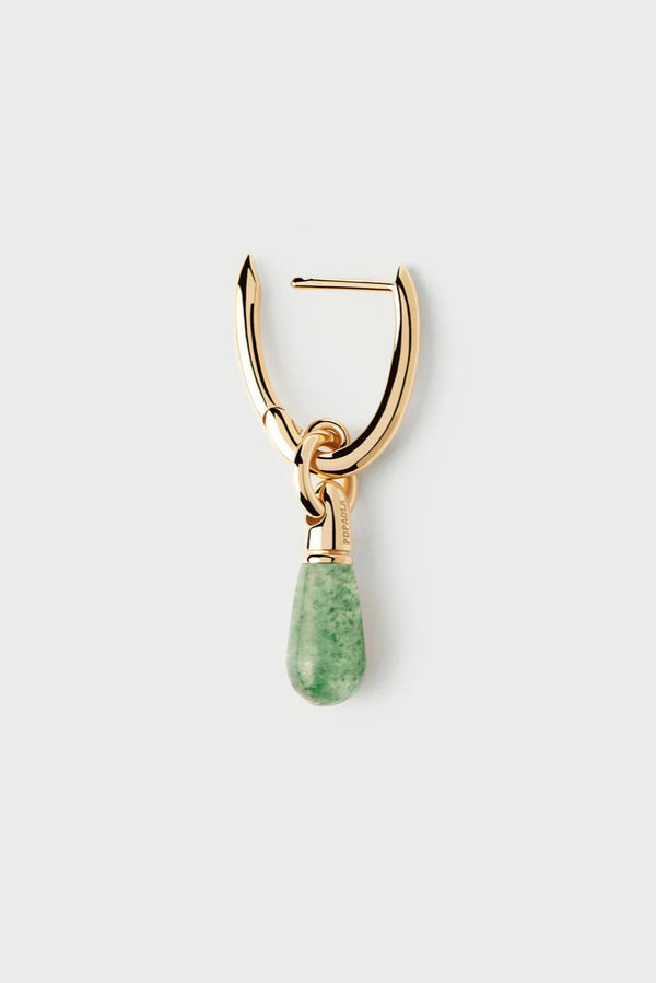 Single hoop with a small green gemstone drop pendant