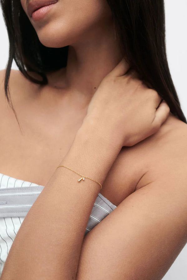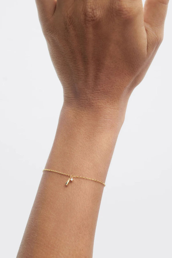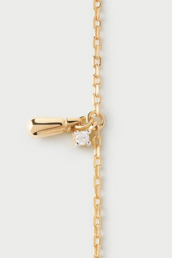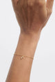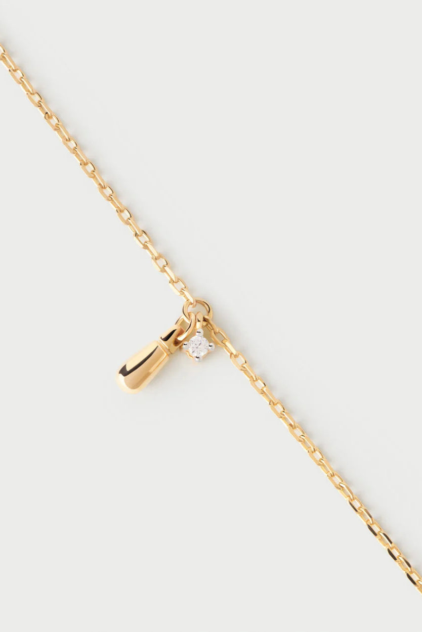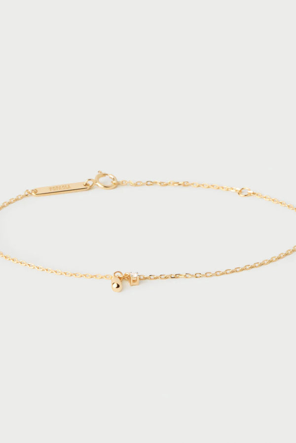 Dainty chain bracelet with a round cubic zirconia and a drop pendant.