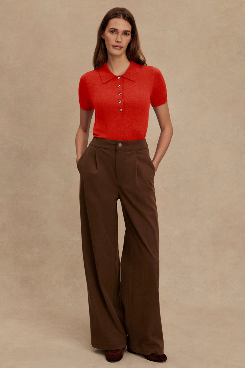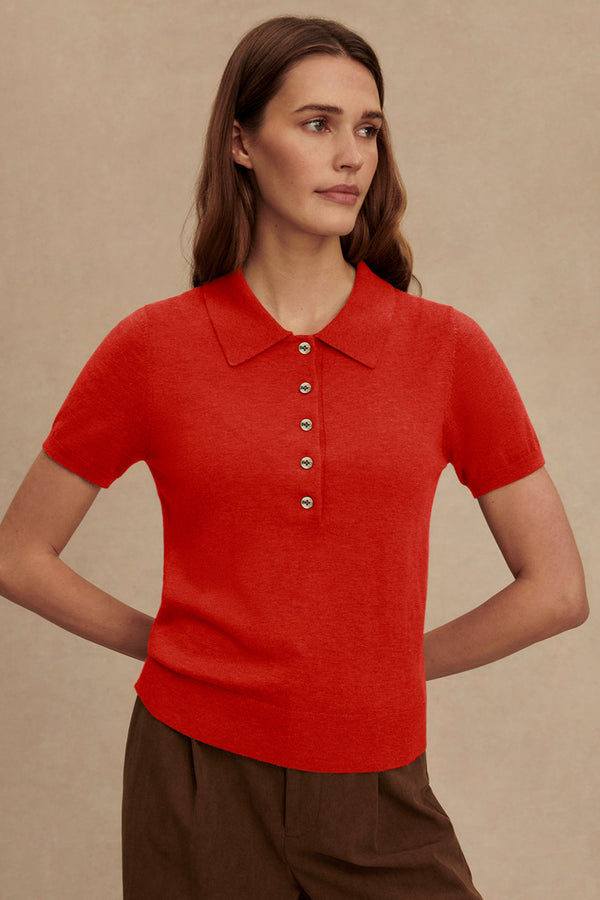Crafted from a super light wool viscose blend, the Toni is an elevated take on your everyday shirt. It comes in an easy polo shape with a clean button placket front, set-in sleeves, and embroidery details above the hem. Perfect for transitional styling with contemporary pants.
