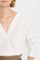 • Ruched sleeves with button cuffs