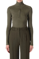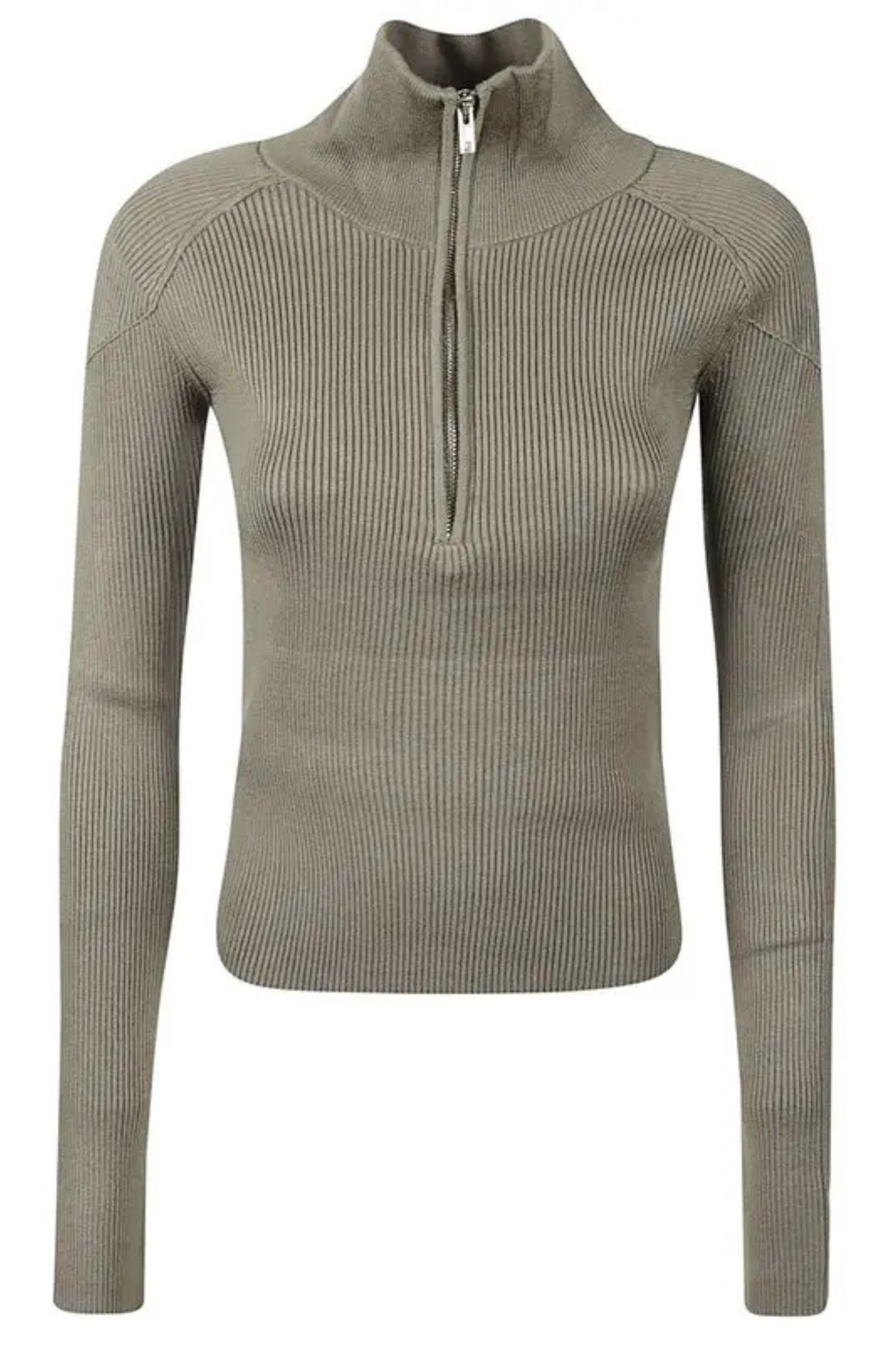 AMBRA ribbed sweater. High collar with zipper and dropped shoulders with shoulder pads.