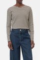 The Basic longsleeve t-shirt presents a regular fit with a classic crew neck design. Crafted from fine rib-jersey combining cotton and modal, it delivers an exceptionally soft touch against the skin. A small Closed monogram flag label at the sideseam adds a refined signature detail.