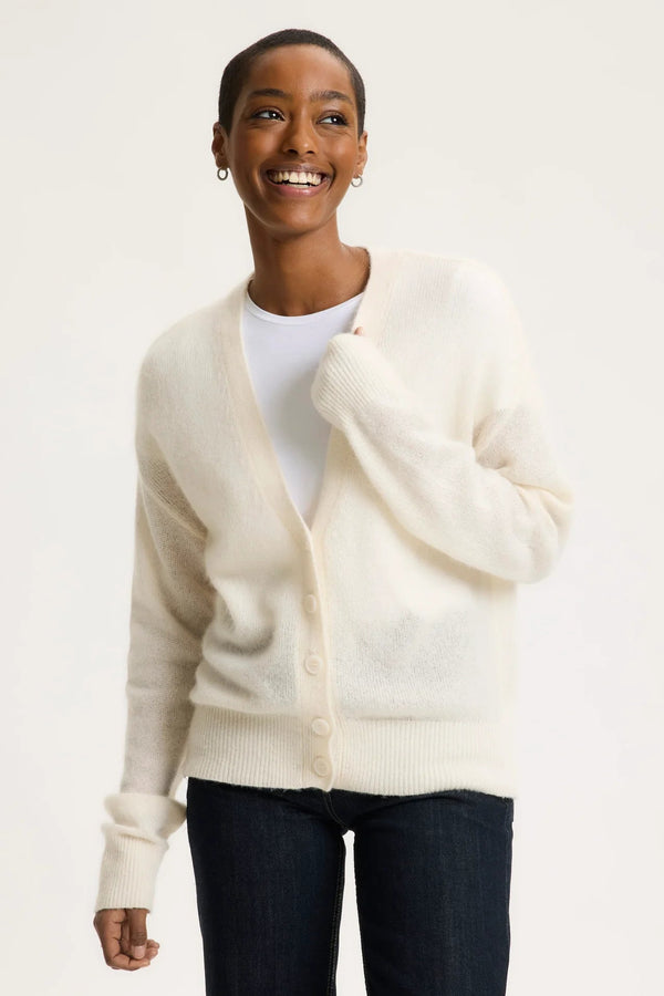 This ultra soft cardigan v-neck cardigan is the perfect piece to layer over your soft touch or stretch linen pieces. Your lightest layer.