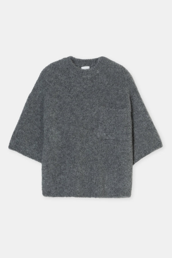 This short-sleeved sweater with a clean look is made from Italian yarn with a soft, brushed finish and a touch of elastane for comfort and shape retention. It features a relaxed, oversized fit, generous sleeves, a chest pocket, and a classic crew neck.