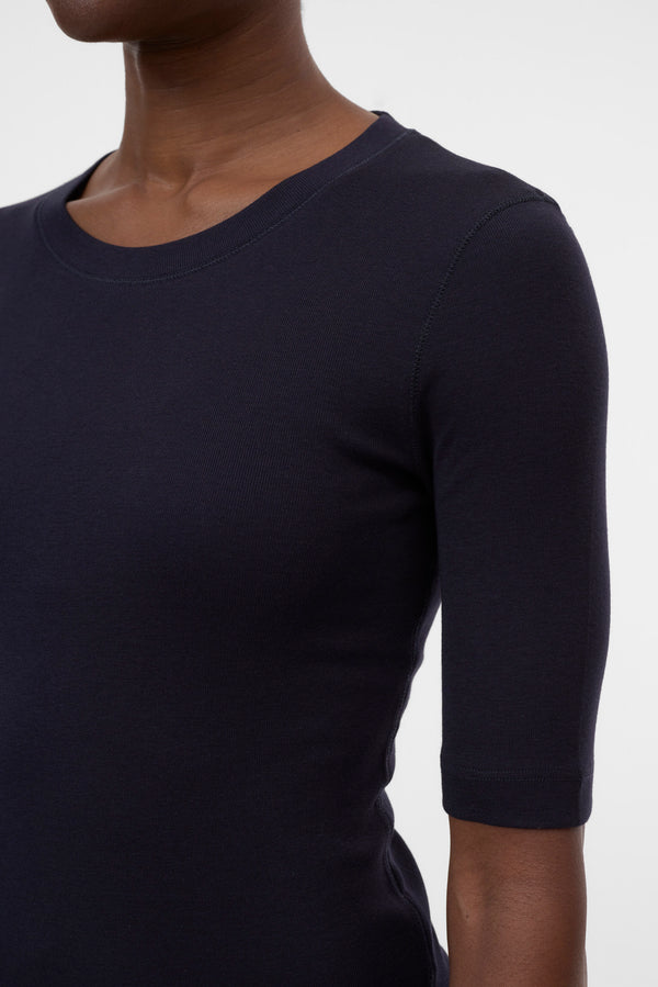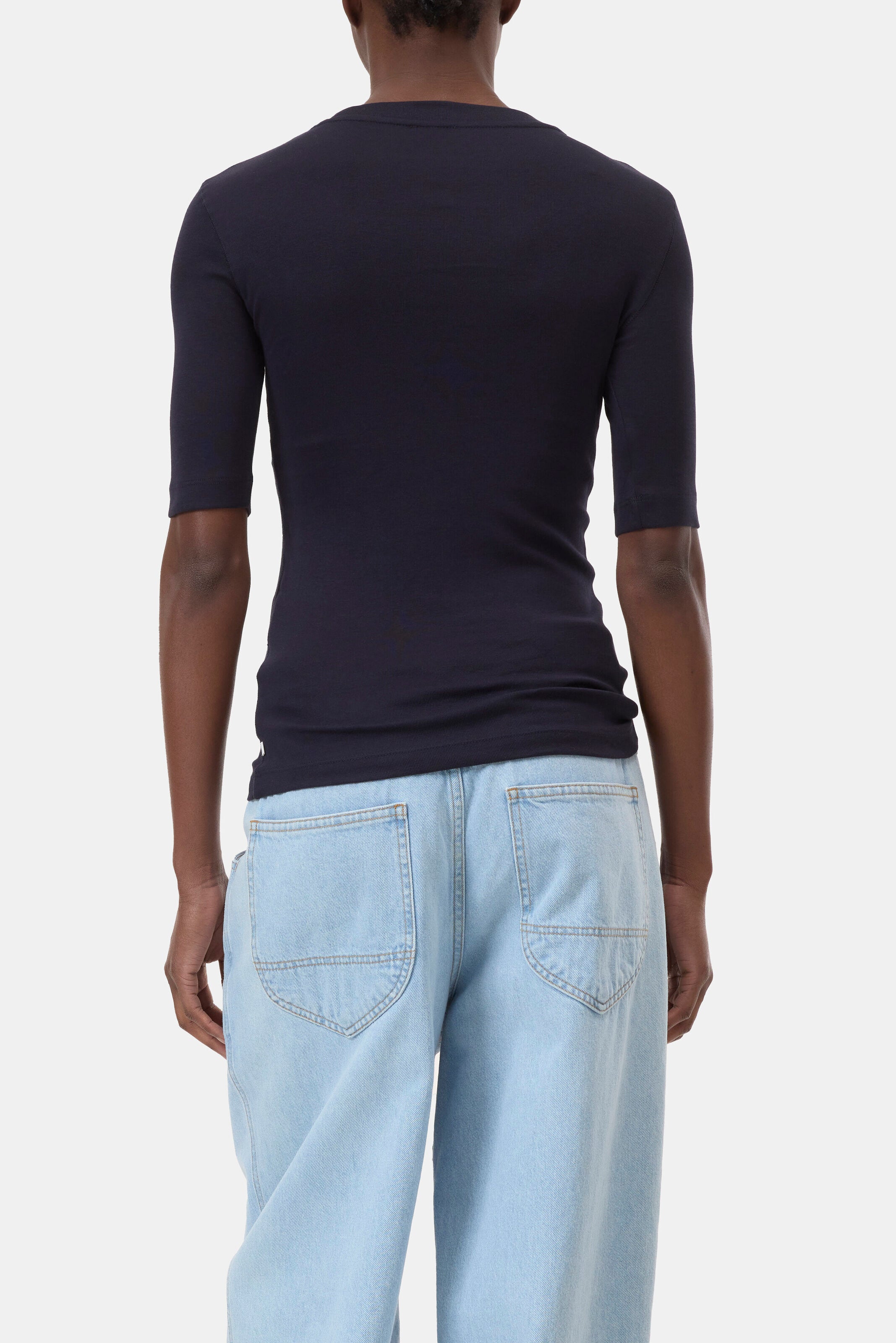 A refined take on an everyday essential. This crewneck short-sleeve top is crafted from 100% cotton, offering a smooth, breathable feel while maintaining its shape throughout the day. Perfect worn on its own or as a polished base layer.