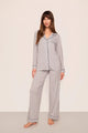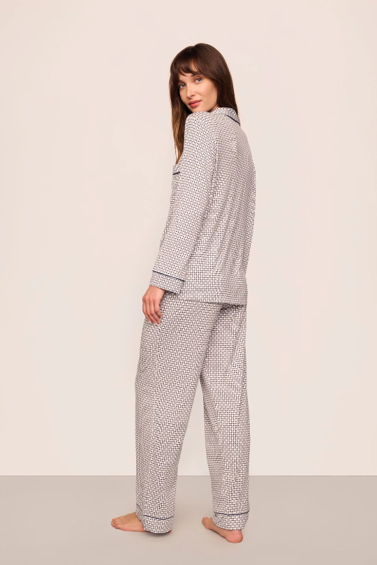 The PJ that started it all. Made from TENCEL™ Modal fibers and a touch of elastane, this buttery soft fabric is verified by OEKO-TEX® Standard 100, meaning it’s dyed with safe and non-toxic dyes. This relaxed long sleeve set features contrast piping, a button-front top with a notch collar and functional pocket, and a low-rise straight leg pant with a thin elastic waistband.