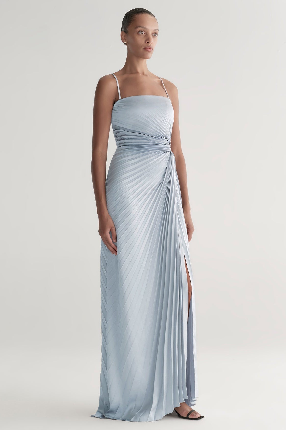 - Vintage satin with allover pleating for graceful movement