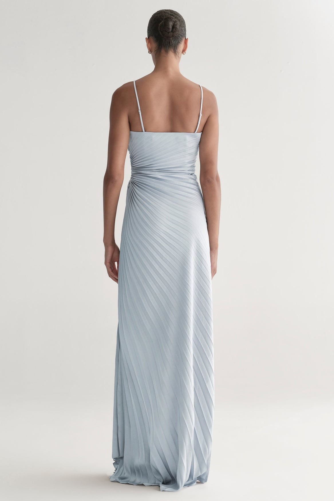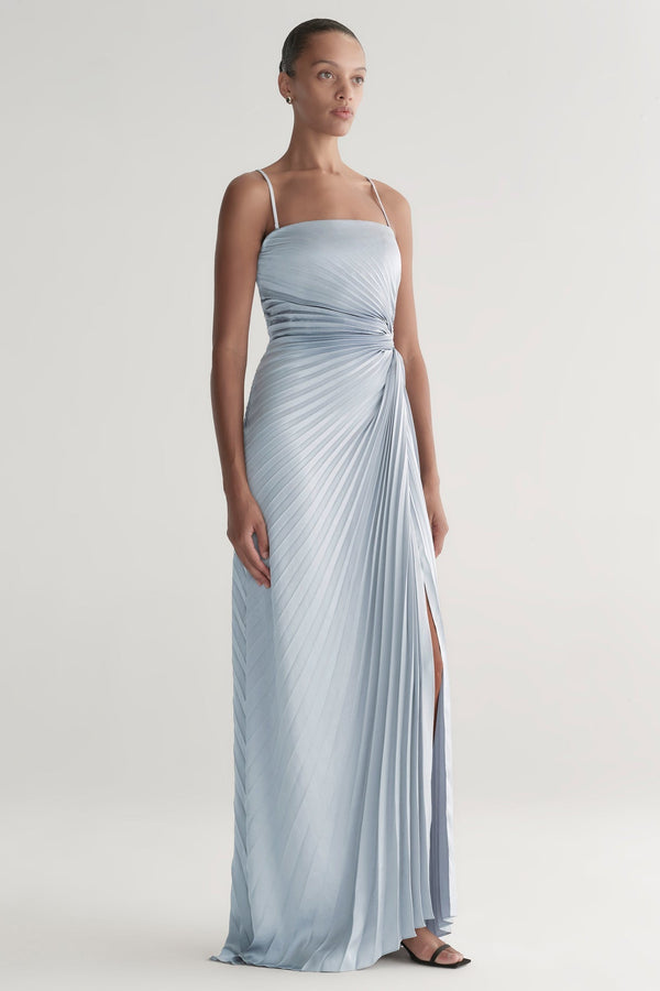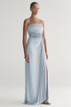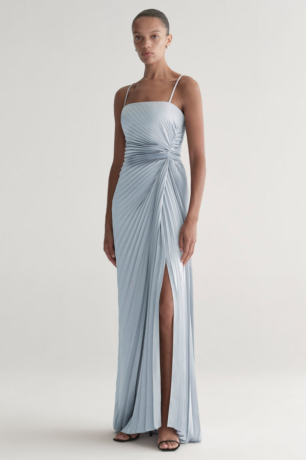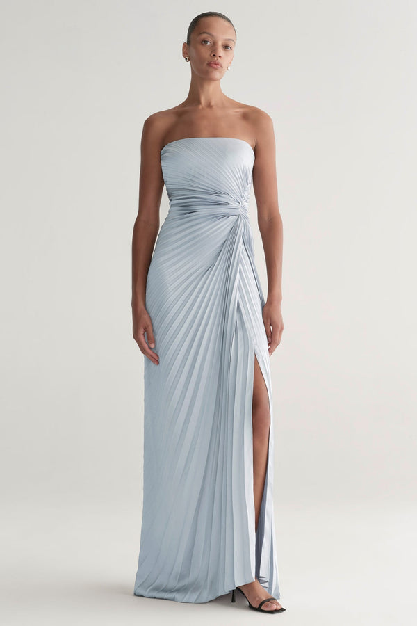 The Layla Gown is our take on the modern evening gown. Crafted from vintage satin with allover pleats, it features a straight, strapless neckline and gathered detail at the waist for a flattering, sculpted silhouette. Perfect for cocktail hours or formal evenings, it moves beautifully and creates understated impact.