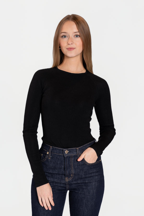 Designed with a slim, feminine silhouette and classic crew neckline, it transitions effortlessly from day to night. Whether worn tucked into tailored trousers or layered beneath a blazer, this piece embodies quiet sophistication and enduring comfort.