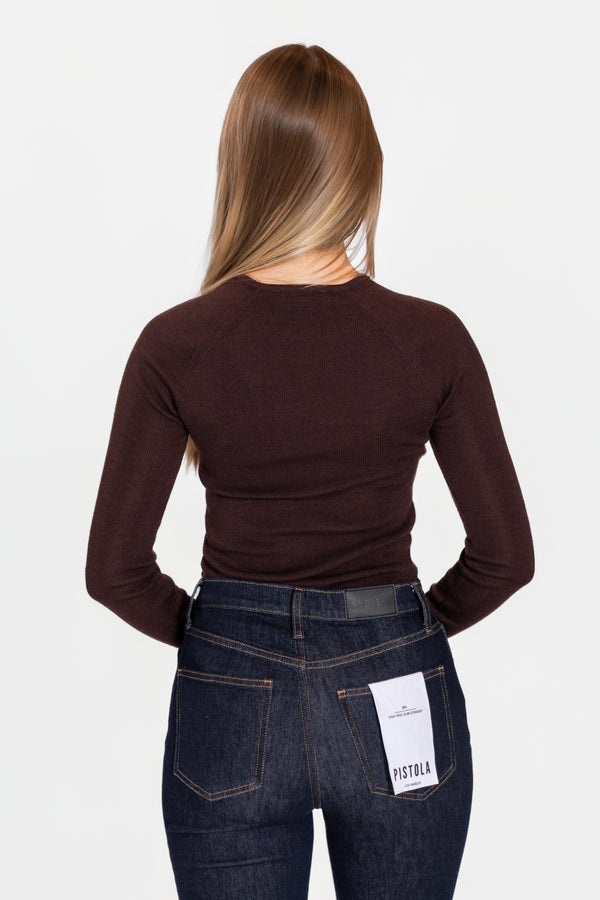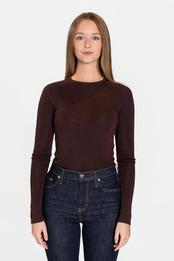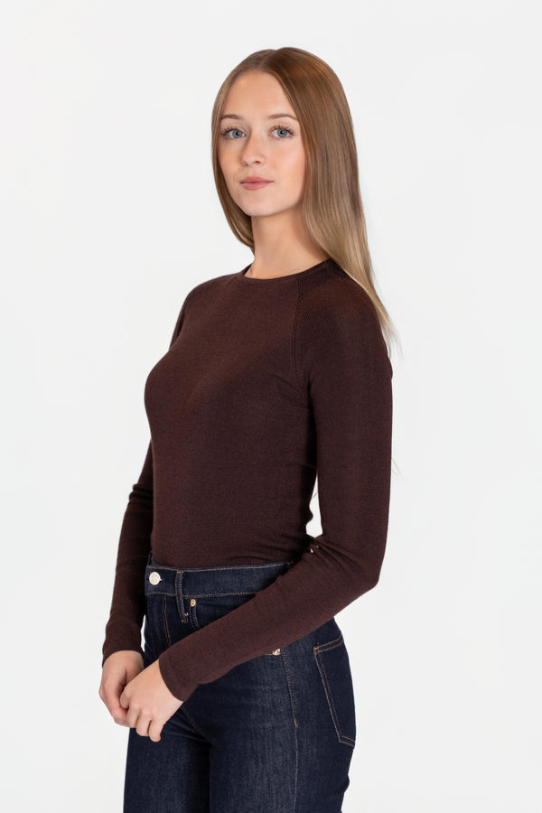 Designed with a slim, feminine silhouette and classic crew neckline, it transitions effortlessly from day to night. Whether worn tucked into tailored trousers or layered beneath a blazer, this piece embodies quiet sophistication and enduring comfort.