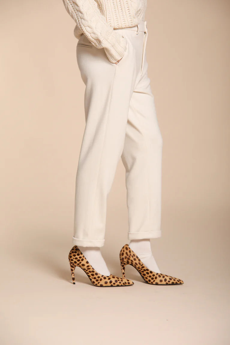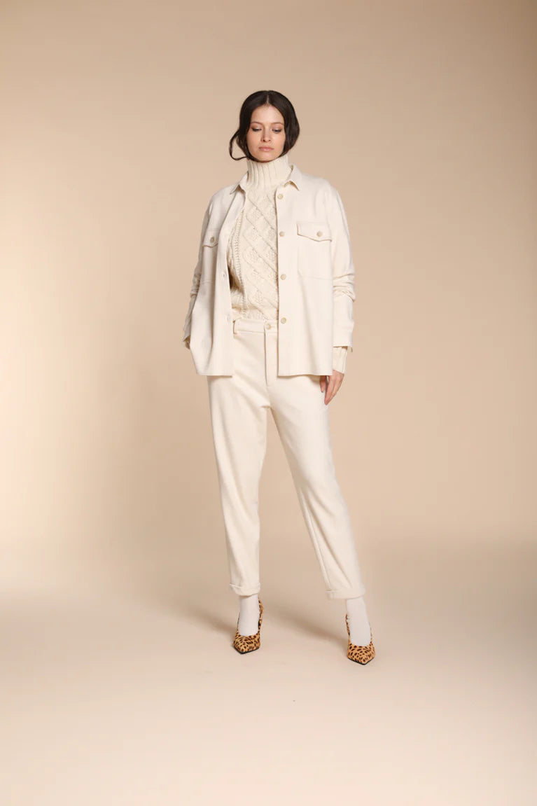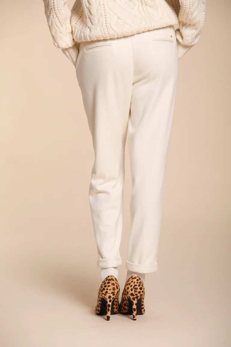 Comfort and elegance for winter: women’s chino pants. Featuring back welt pockets, an elastic waistband, and a carrot fit, the New York Cozy blend comfort and sophistication. The M rivet by Mason’s ensures authenticity and quality, for a versatile and stylish look.