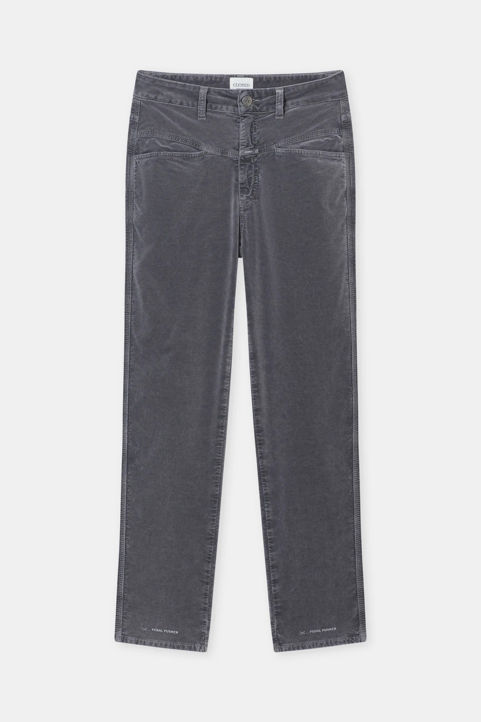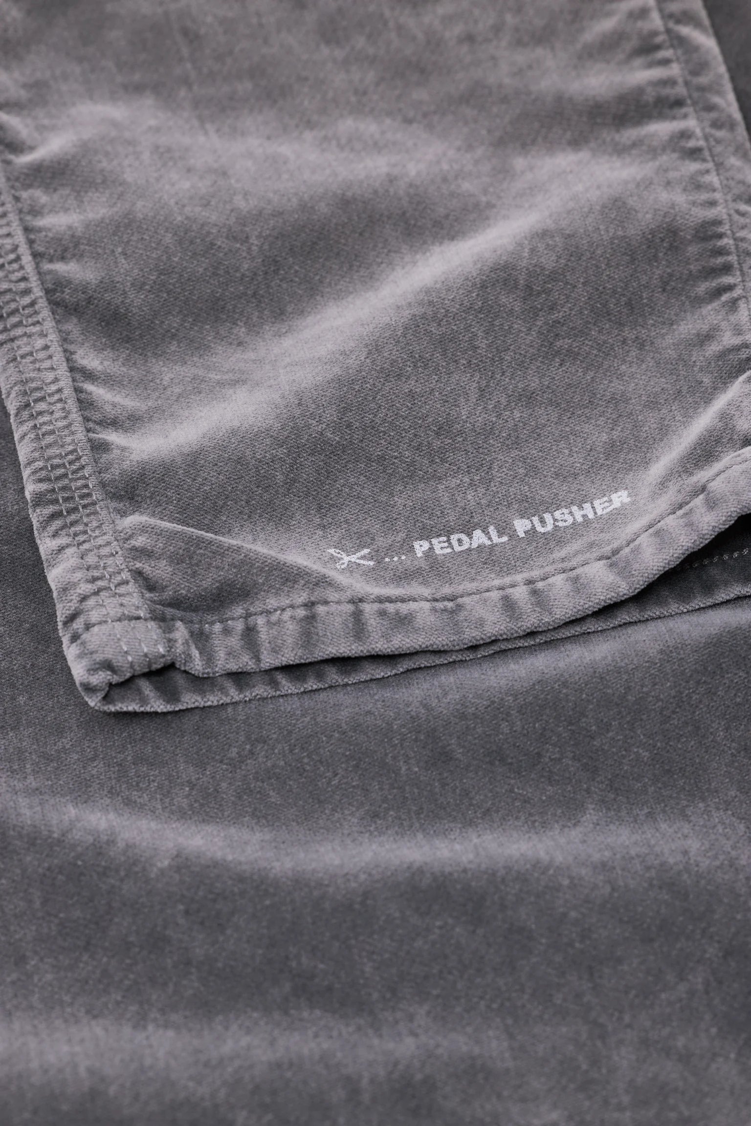 The Pedal Pusher pants showcase a high-waisted, relaxed fit with a cropped leg design. Meticulously crafted in Italy from cotton modal stretch velvet, they undergo a specialised garment dye technique resulting in a worn-in aesthetic with subtle fading and authentic used look effects. Remarkably soft, they offer exceptional comfort.