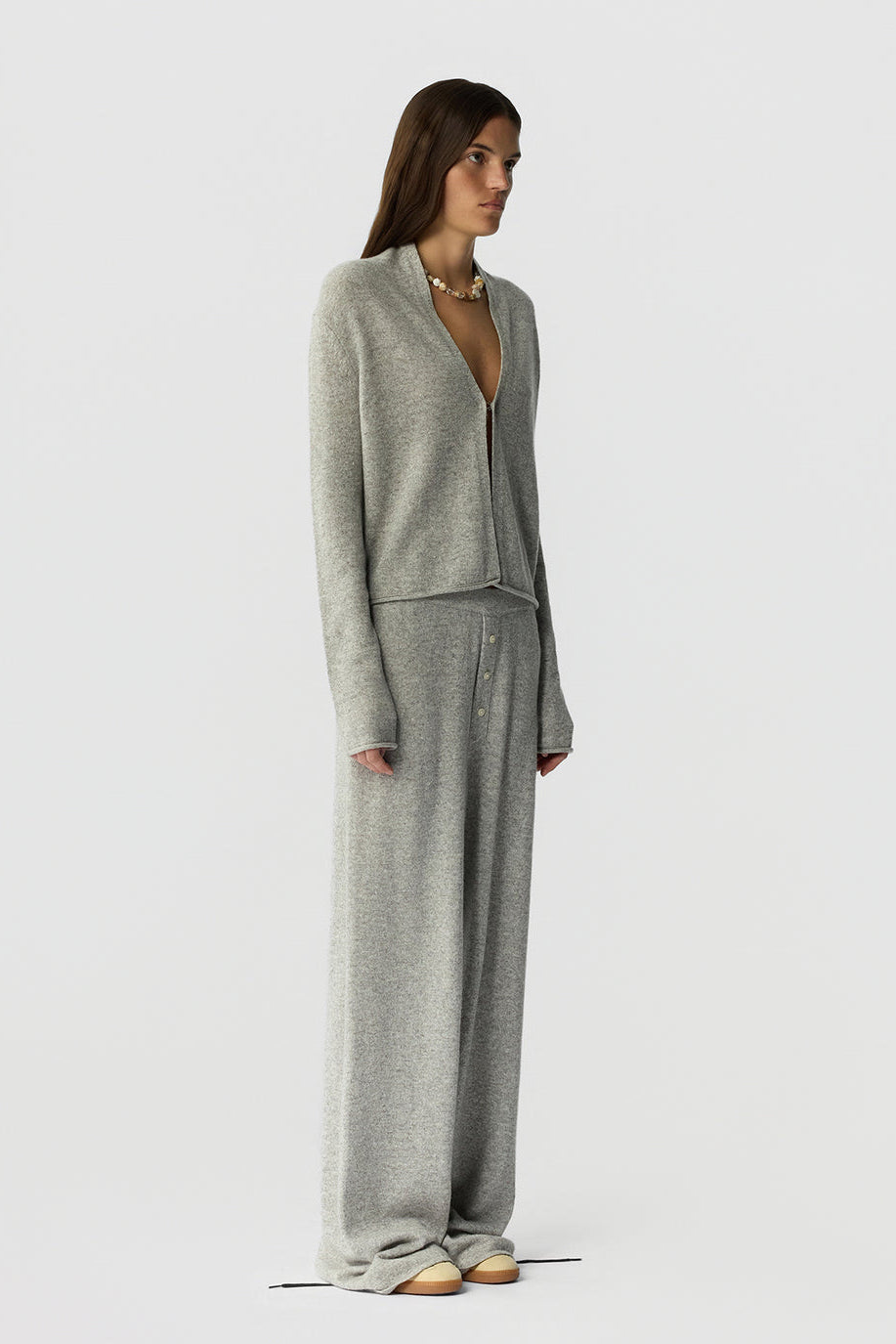The iconic Stealth Cardigan is reimagined in a light-weight cashmere–linen blend for warmer days. Designed with a shawl collar and discreet hook-and-eye closure, this women’s cardigan layers effortlessly or wears beautifully on its own, transitioning easily from daytime to evening.