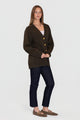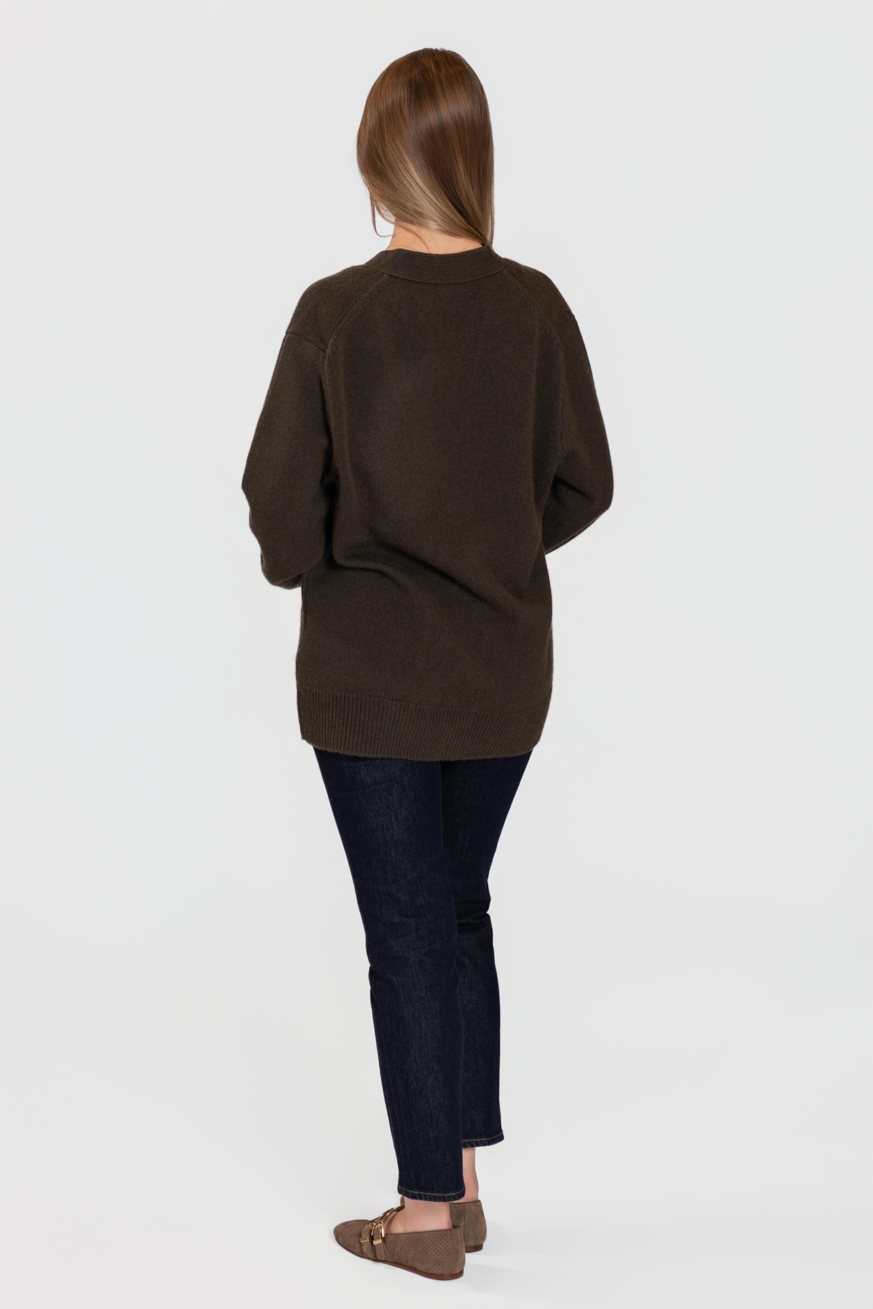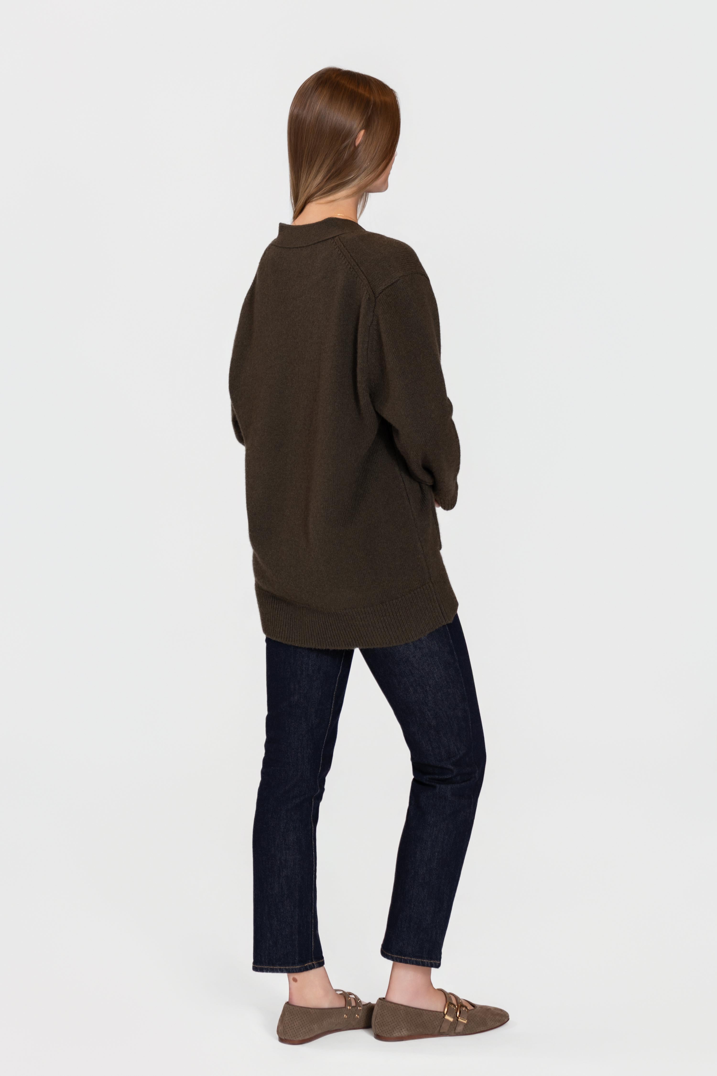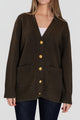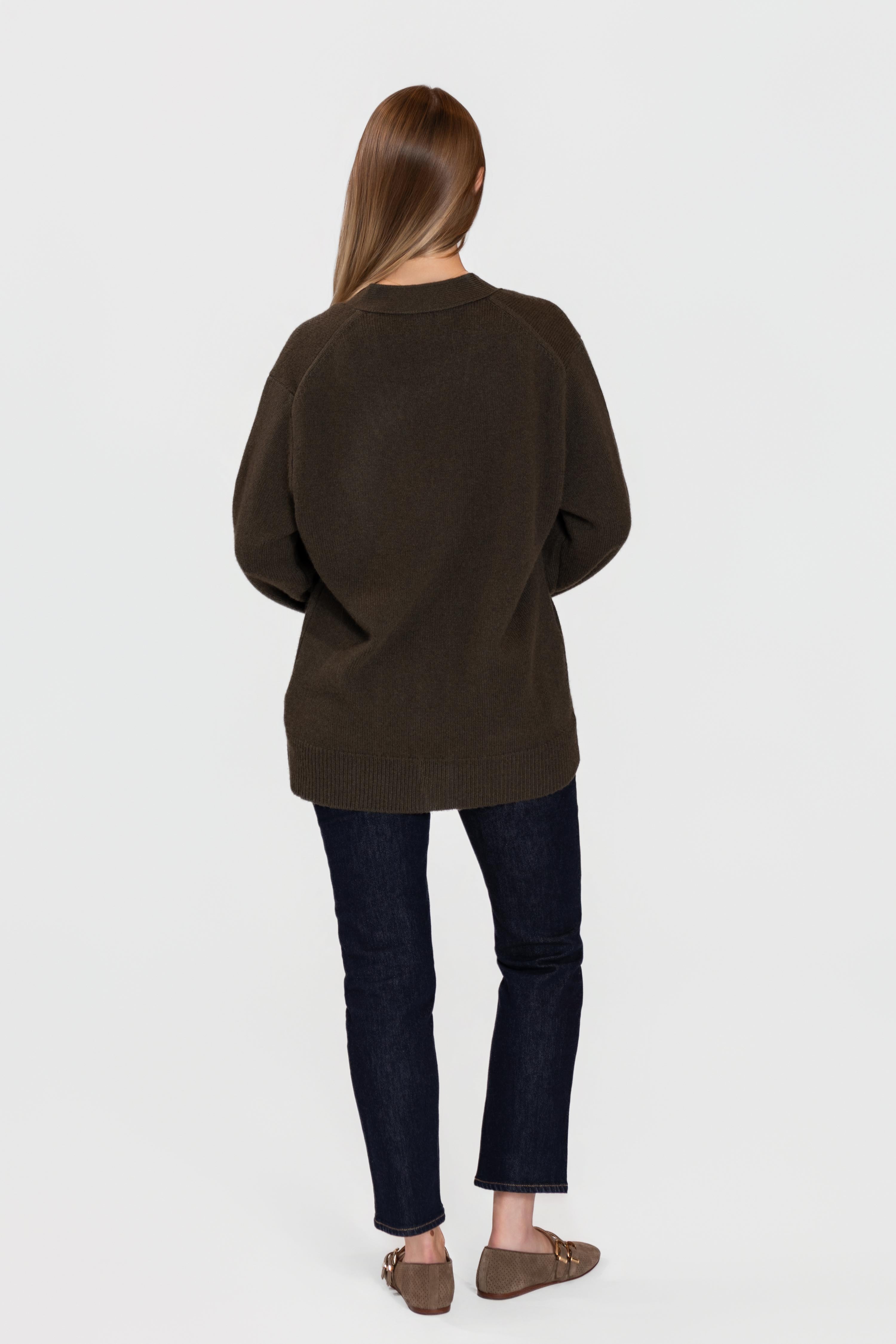 Practical front patch pockets and wide ribbed trims enhance both comfort and style, creating a piece that’s as functional as it is elegant. The rich chocolate-brown hue pairs effortlessly with denim or tailored trousers for a sophisticated, everyday look.