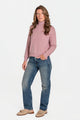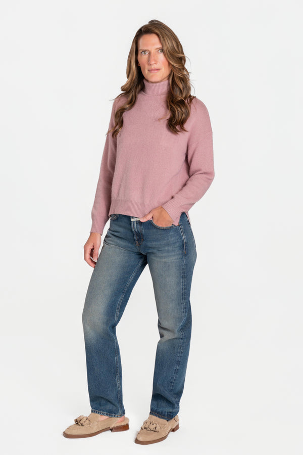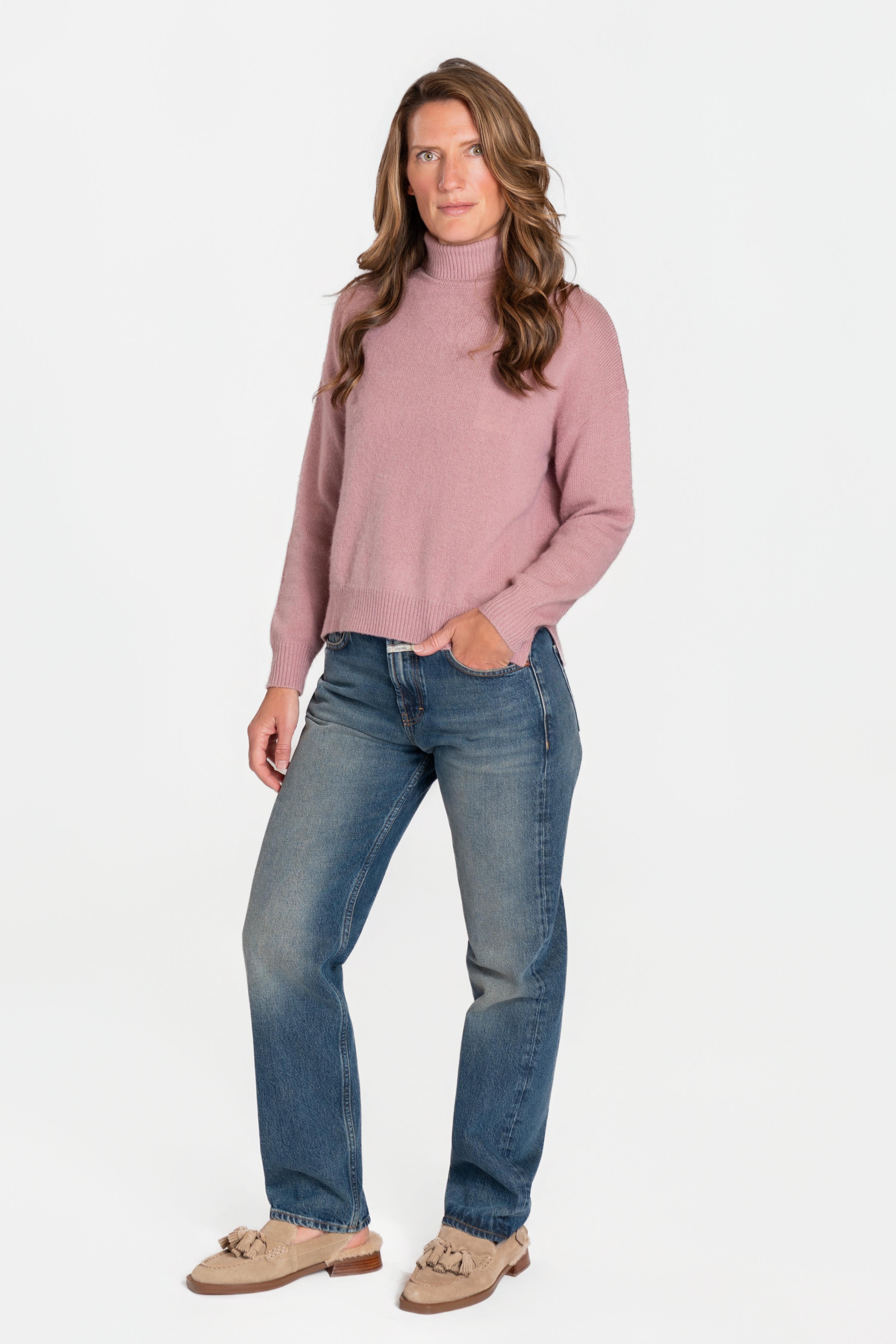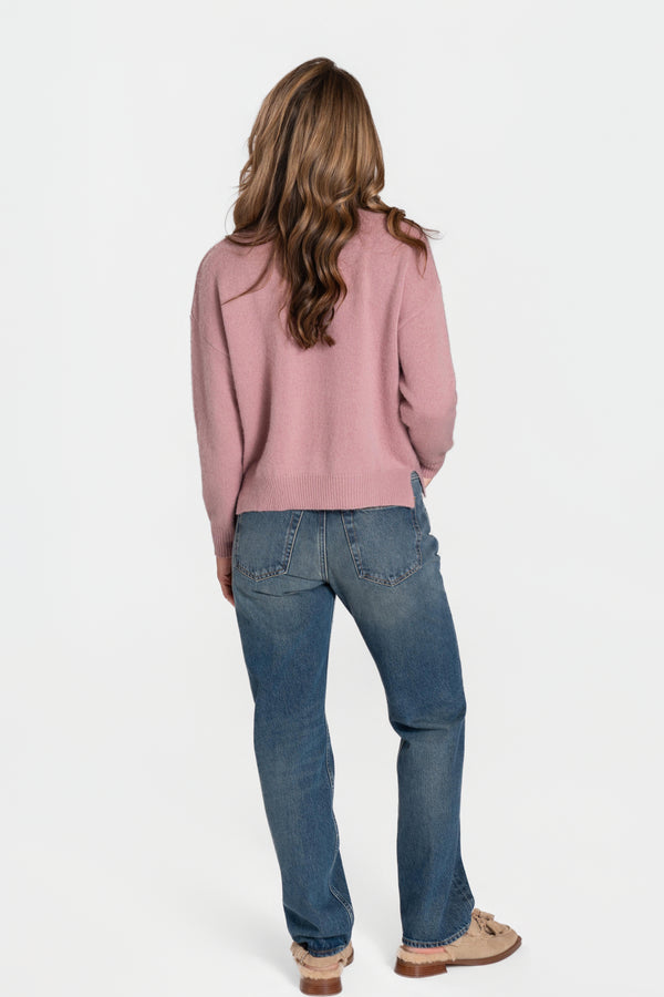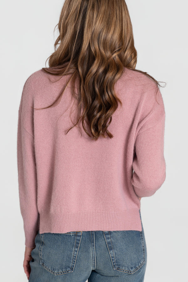 This muted rose hue adds a gentle pop of color, perfect for pairing with denim. Designed for layering or solo wear, it’s a wardrobe staple that brings warmth and sophistication to any look.